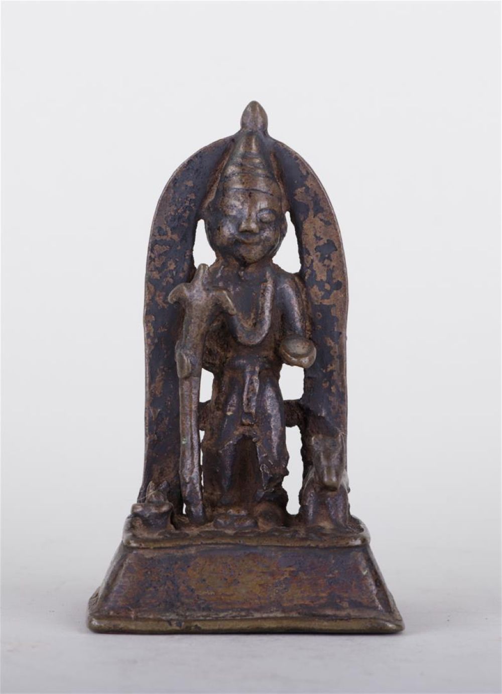Lotto 2065 | A bronze figure with animal. India, 19th century.13 x 7 cm.