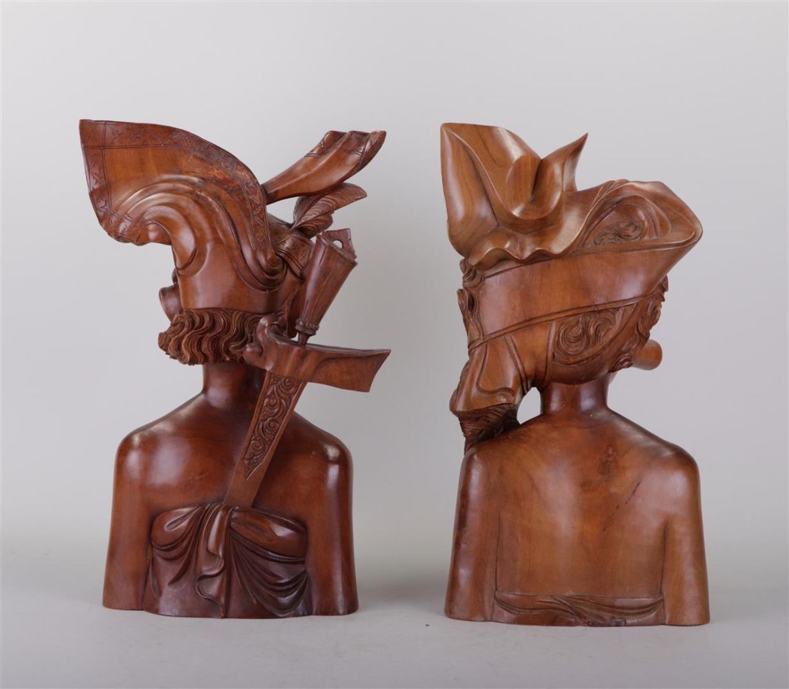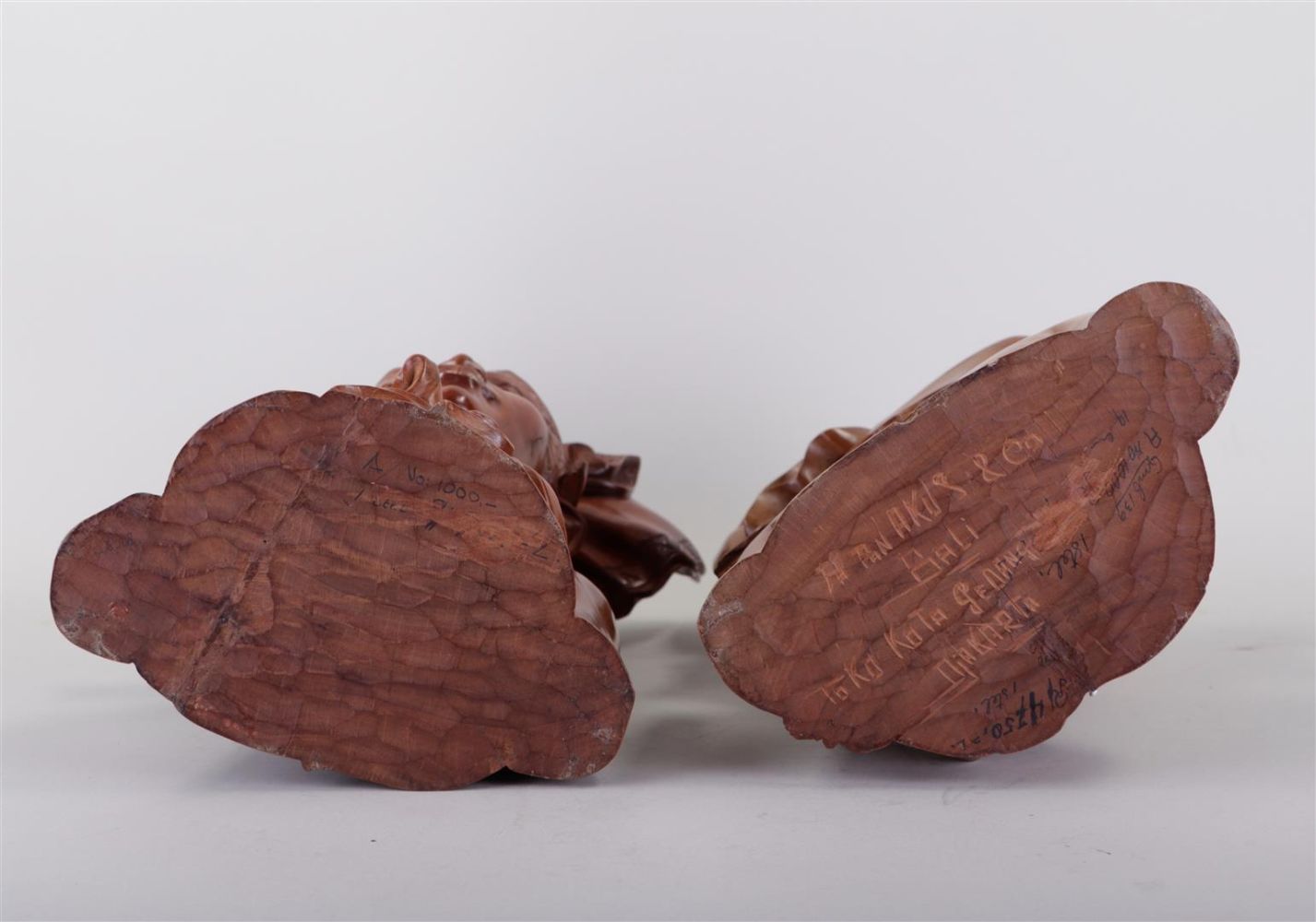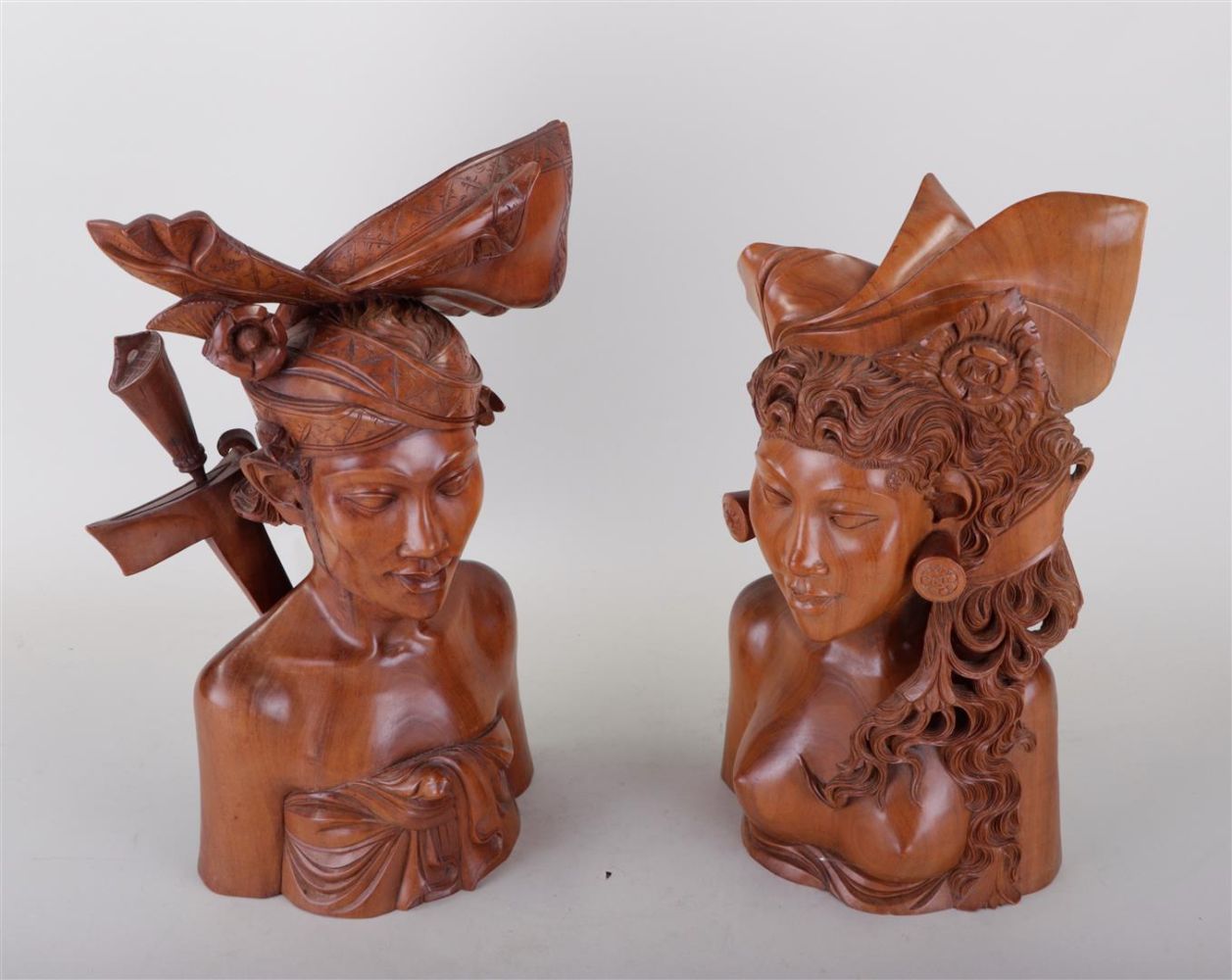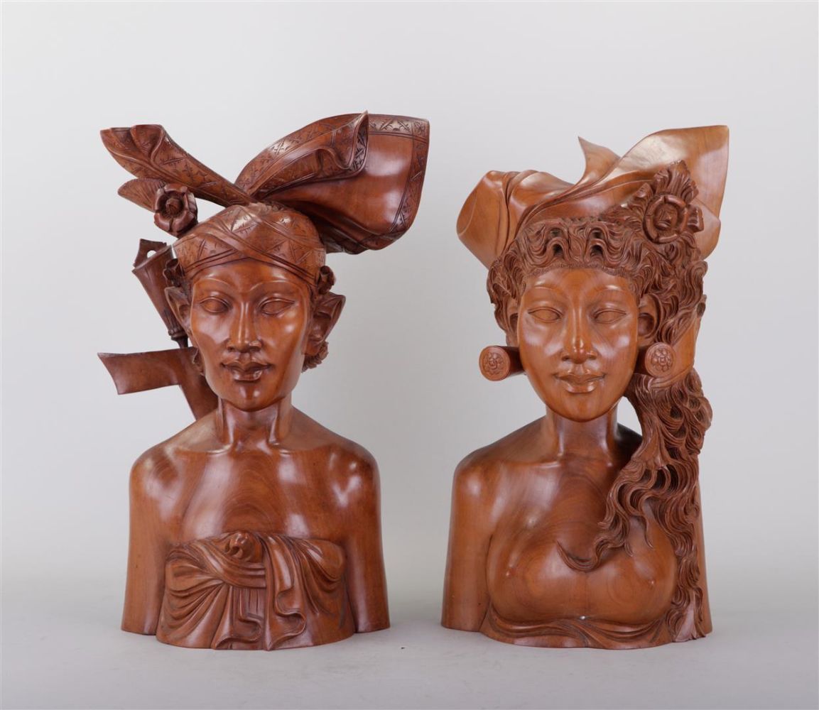 A set of two Balinese carvings depicting a bride and groom, Height 38 cm.