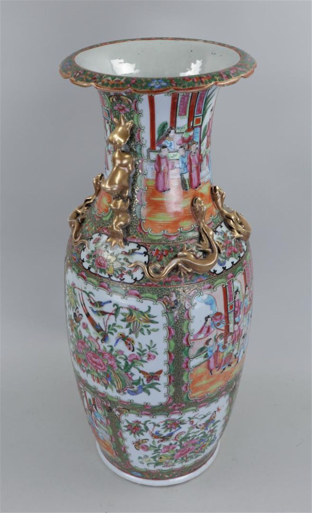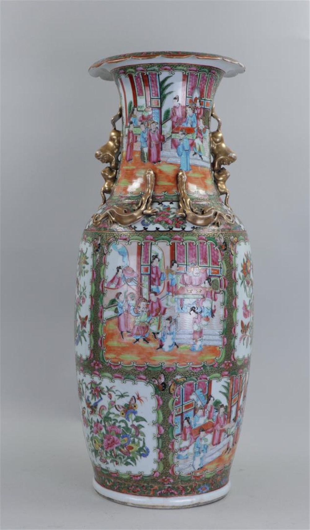 A very large famile rose Cantonese vase with decoration of various figures. China.
