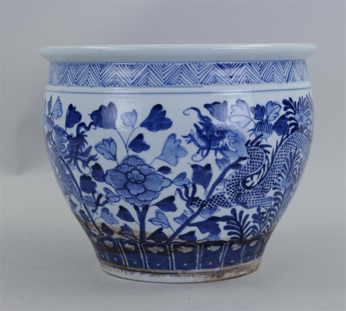 A porcelain cachepot with dragon decoration. China, 20th century.
