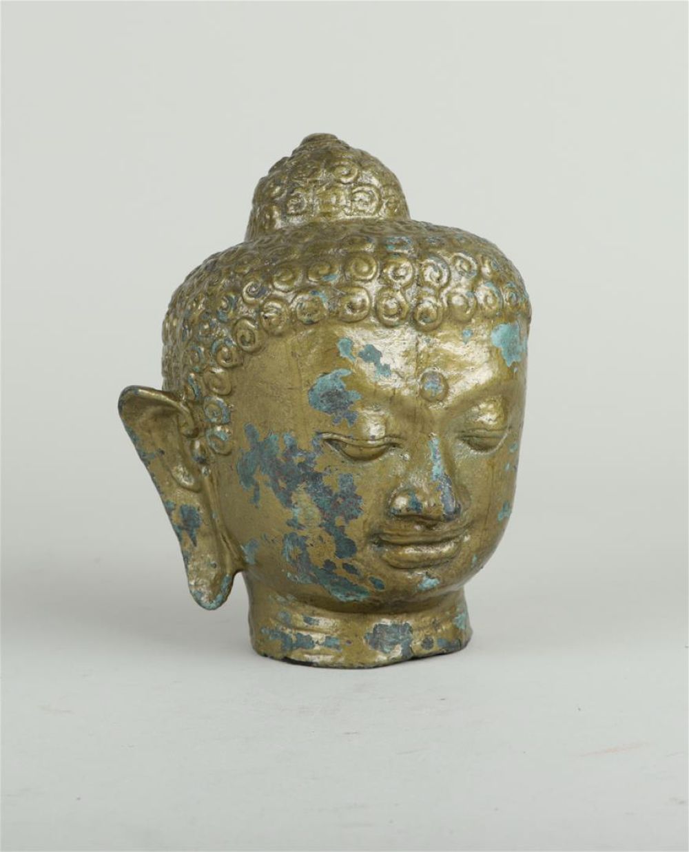 A bronze gold painted Buddha head. Probably Cambodia, circa 1900.