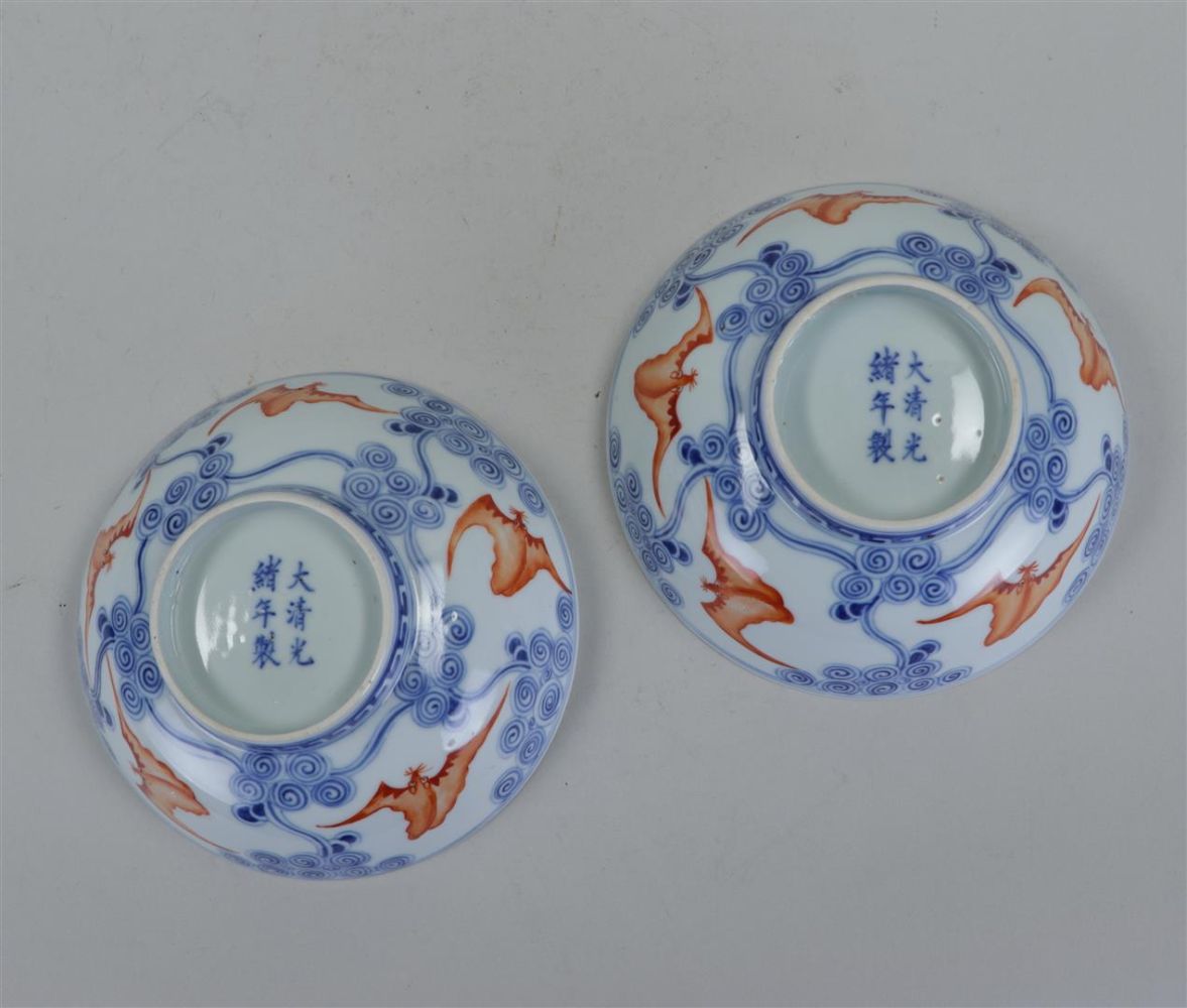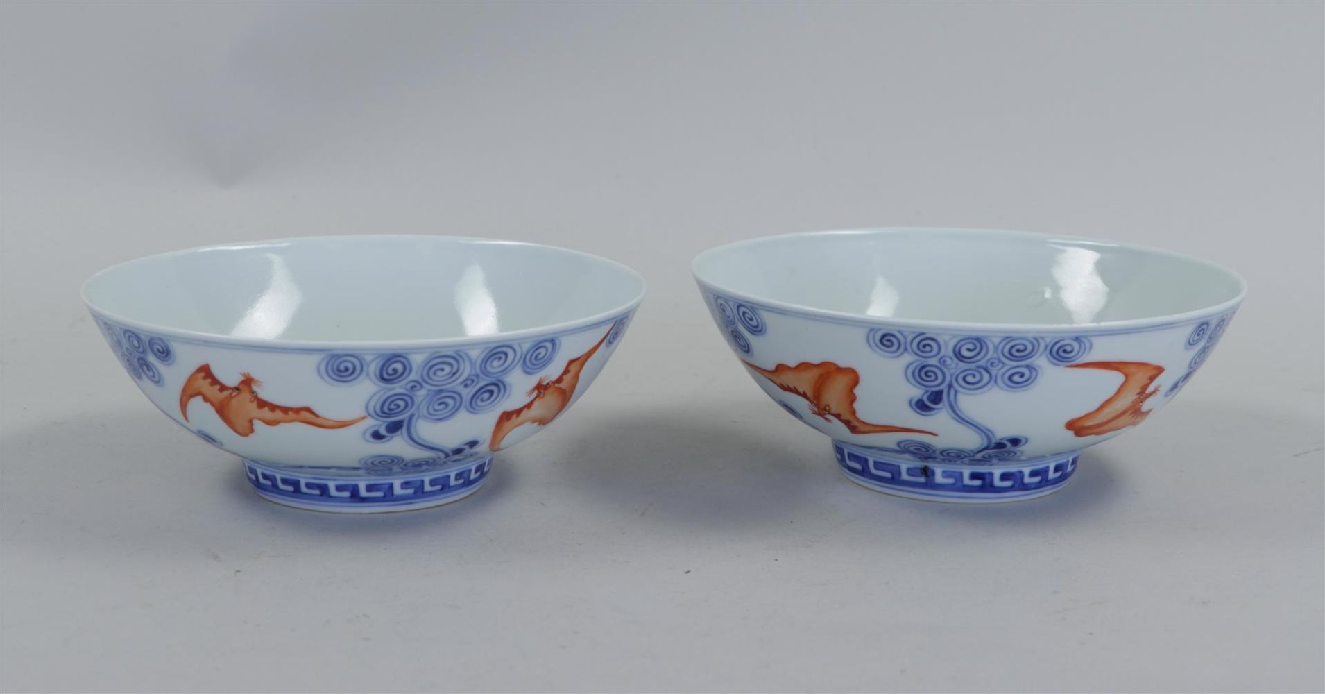 A set of porcelain iron red bowls decorated with bats, marked Guanxu. China,...