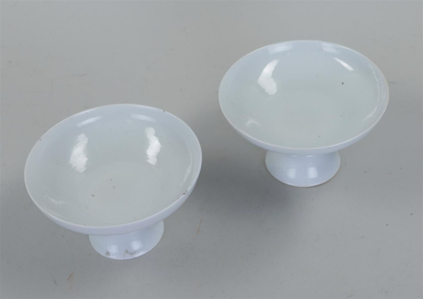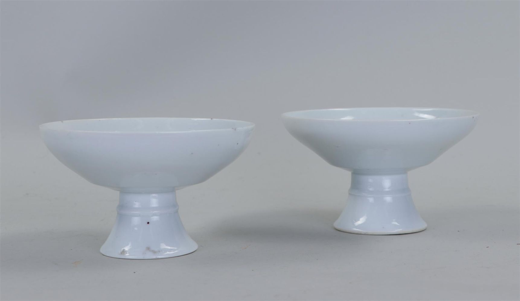 A set of two Blanc de Chine stem cups. China, 19th century. Minimal edge damage.