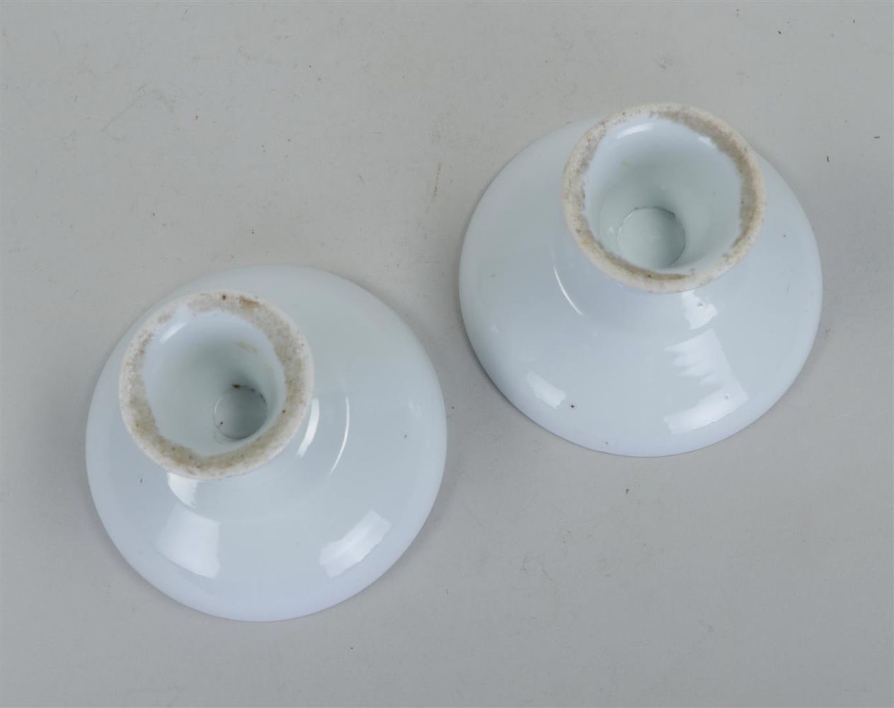 A set of two Blanc de Chine stem cups. China, 19th century. Minimal edge...