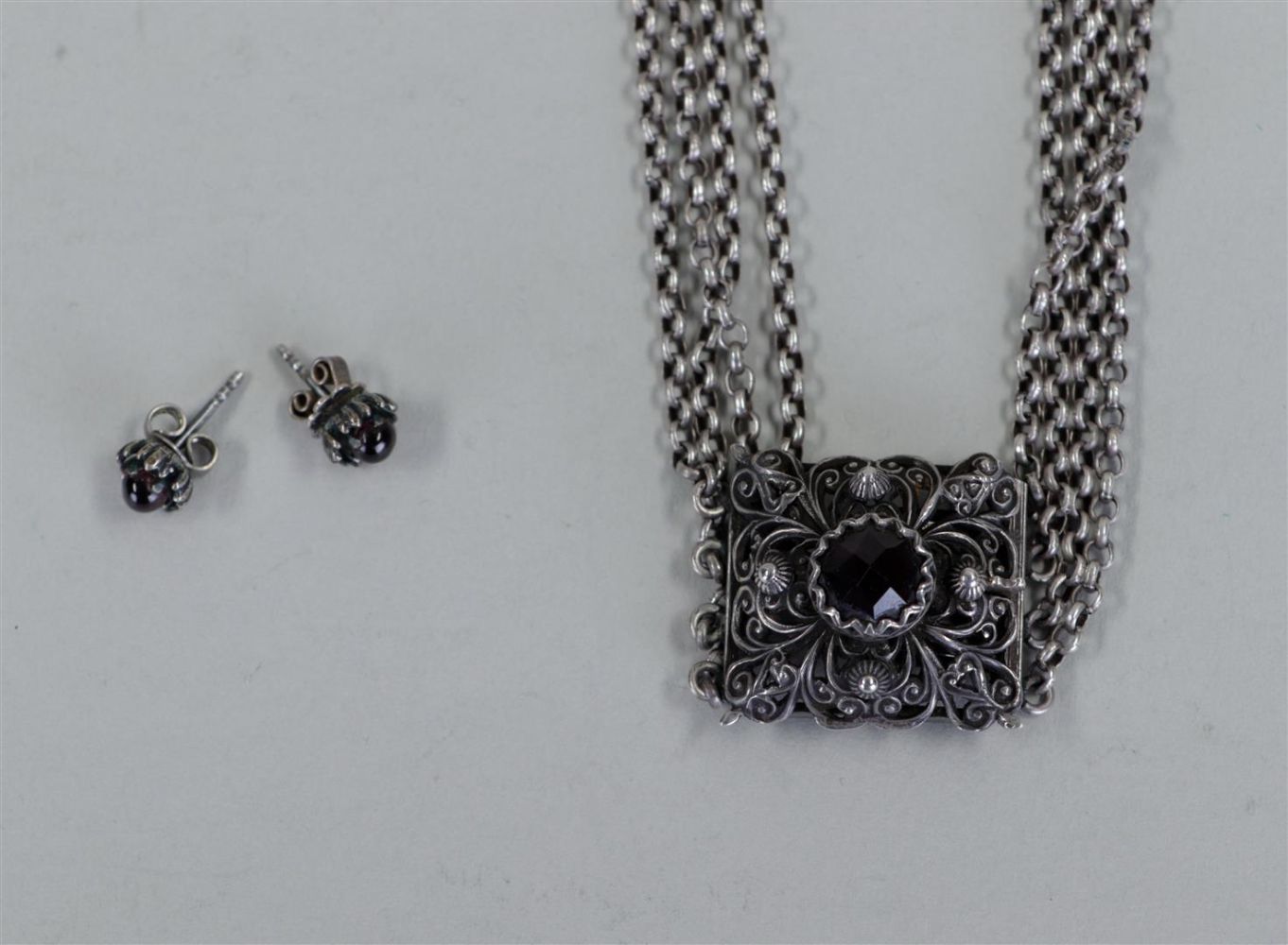 Jewelry set silver with garnet stone -necklace, stud earrings, bracelet, ring