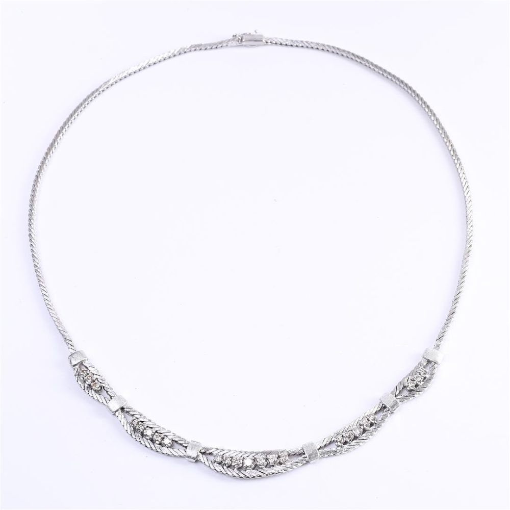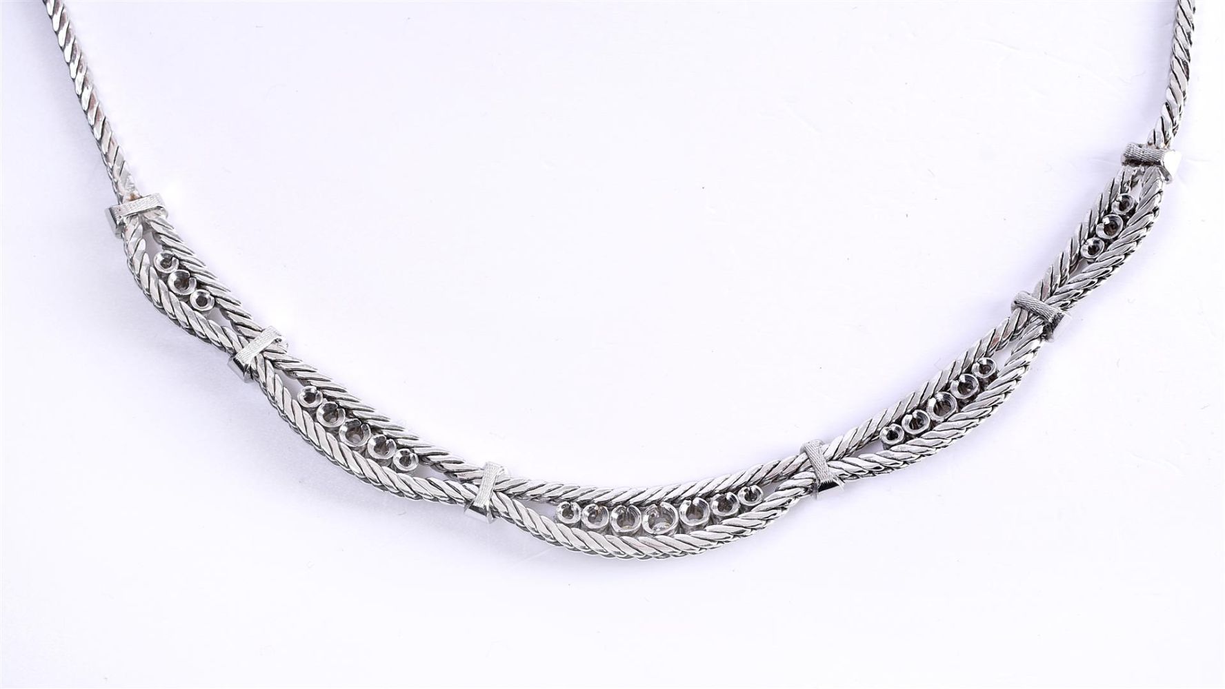 Lotto 3014 | A white gold (14 kt) choker necklace set with 23 brilliant cut diamonds,...