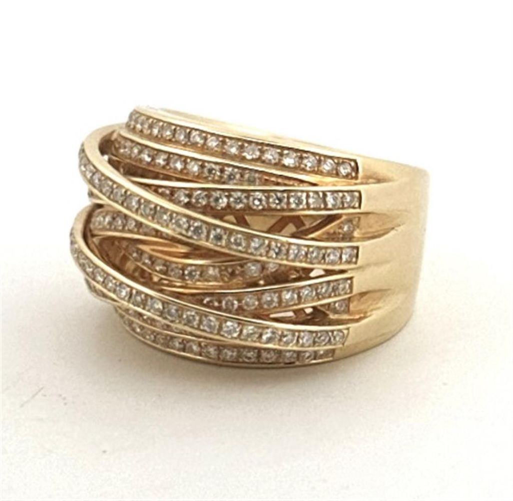 Yellow gold band ring set with approx. 161 brilliant-cut diamonds.