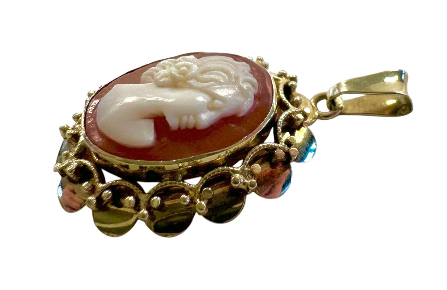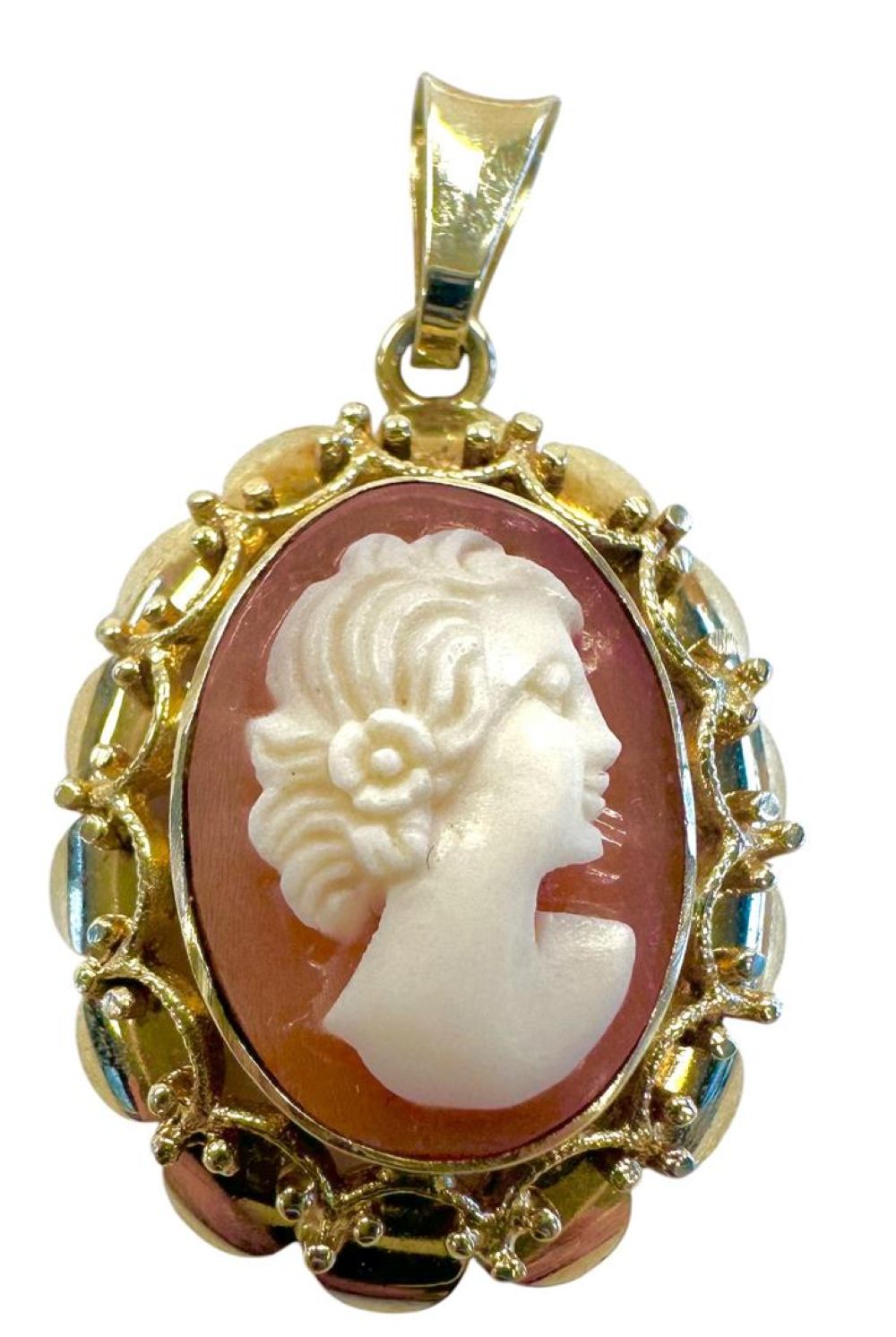 14 kt yellow gold pendant set with an oval cameo.