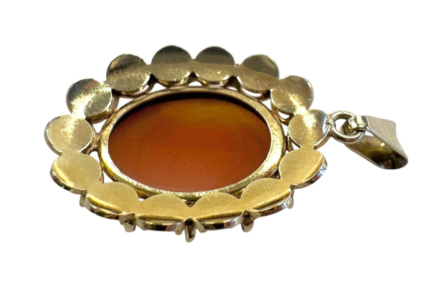 14 kt yellow gold pendant set with an oval cameo. Dimensions: 33.4 mm x 19.3...
