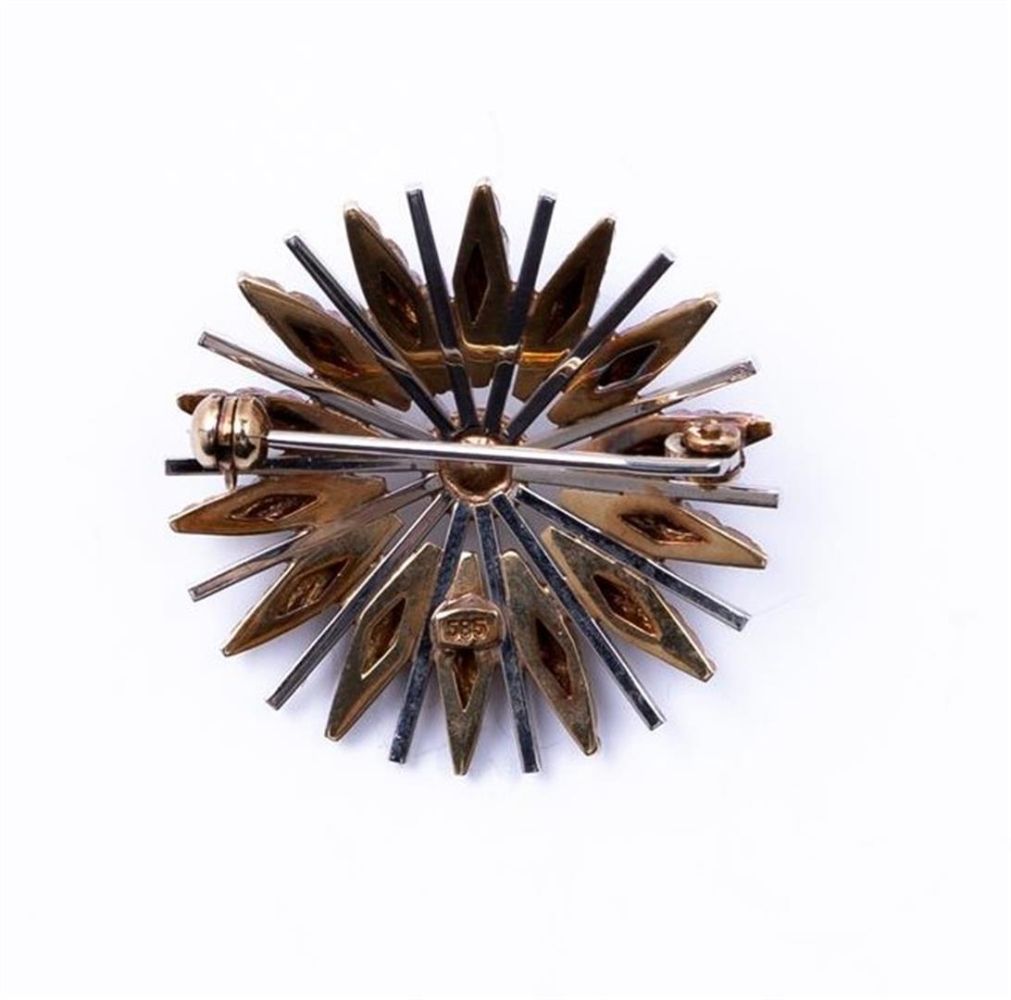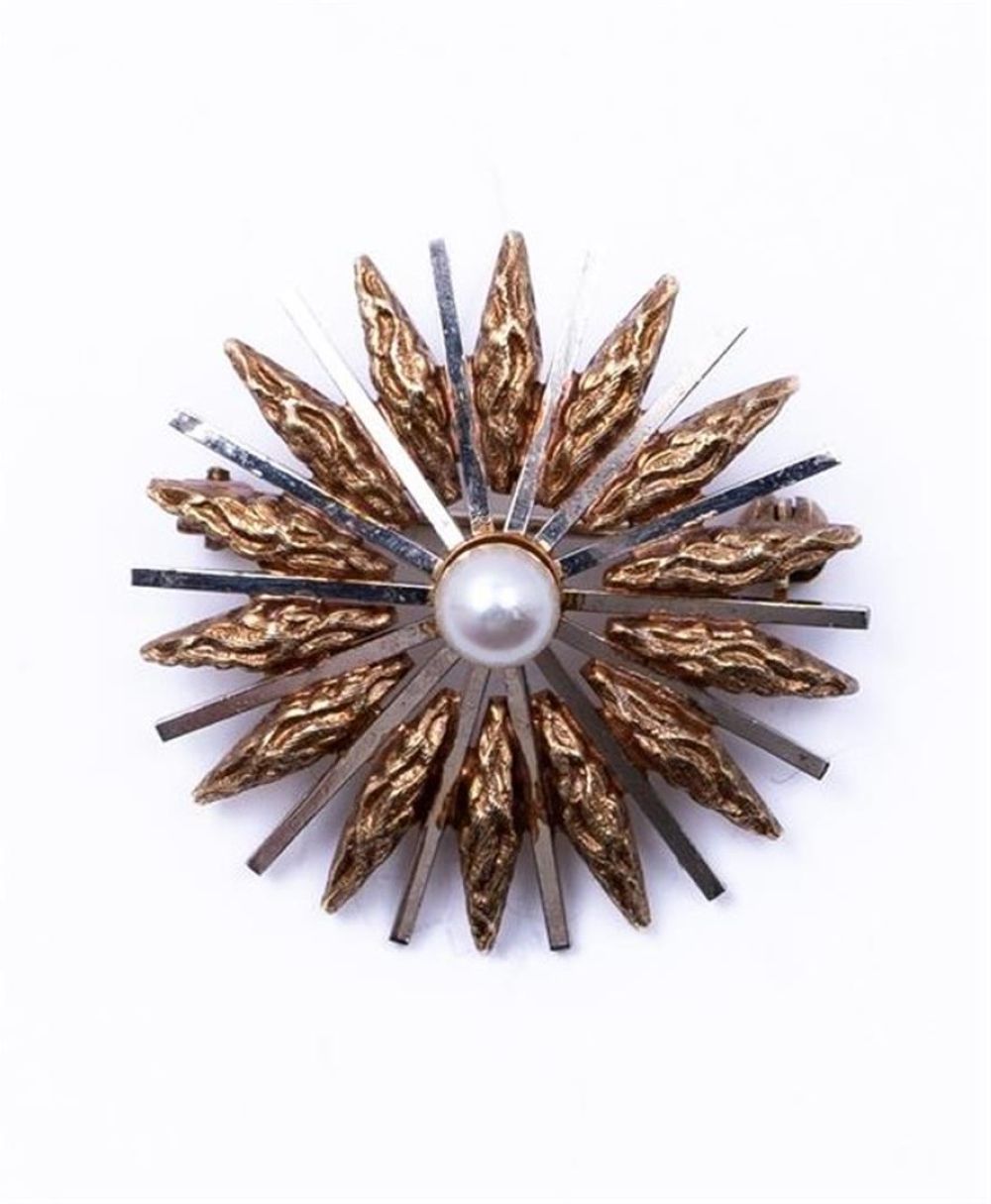9kt Bicolor gold brooch set with imitation pearl. Weight: 7.95 grams Hallmark...