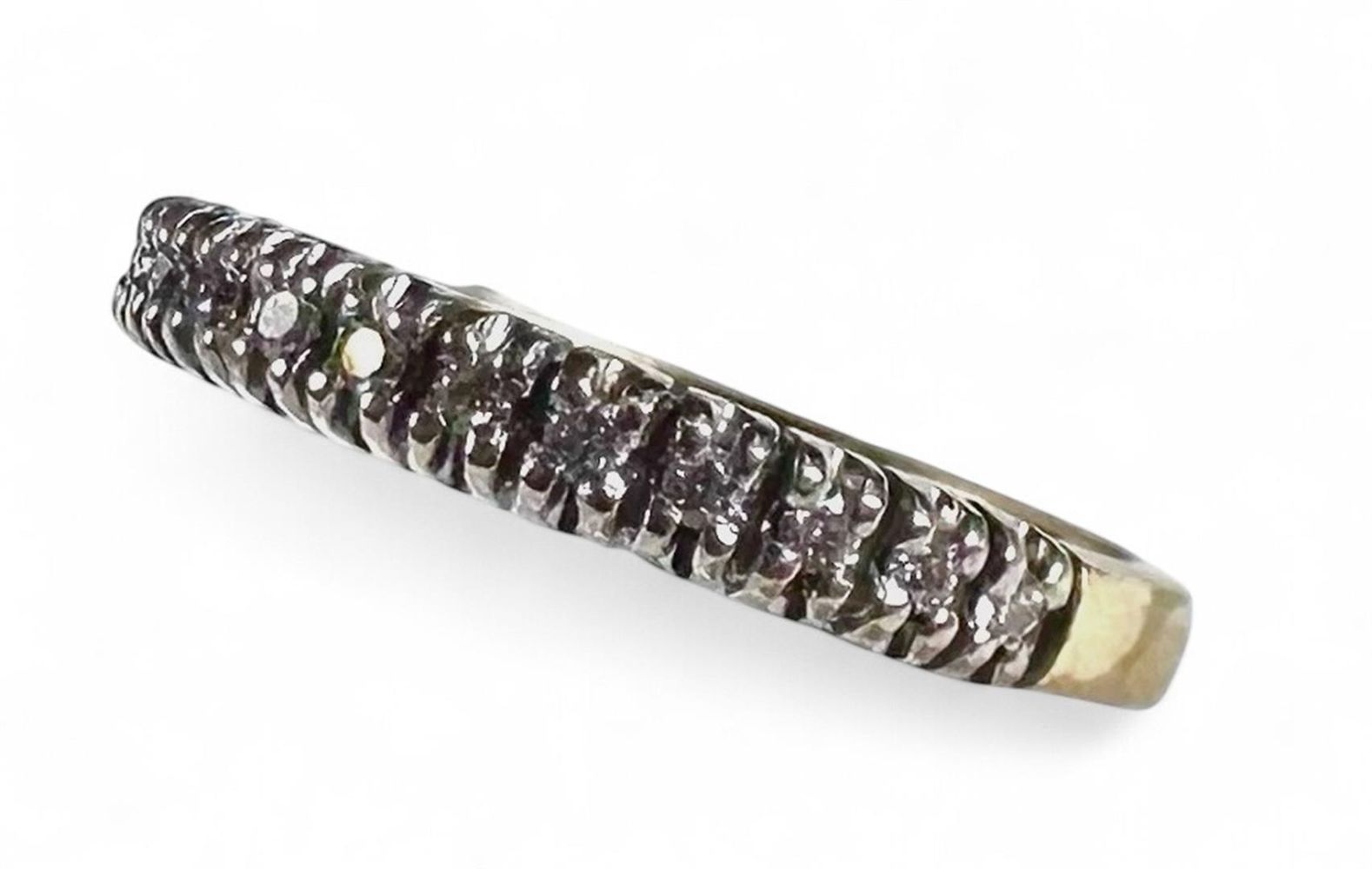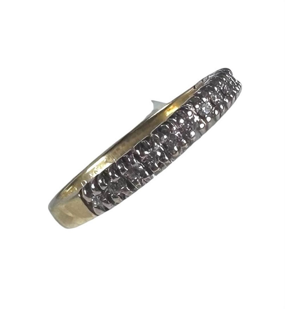 18kt Bicolor gold half alliance ring set with 14 brilliant cut diamonds of 0.01ct. With a total weight of 0.14ct.