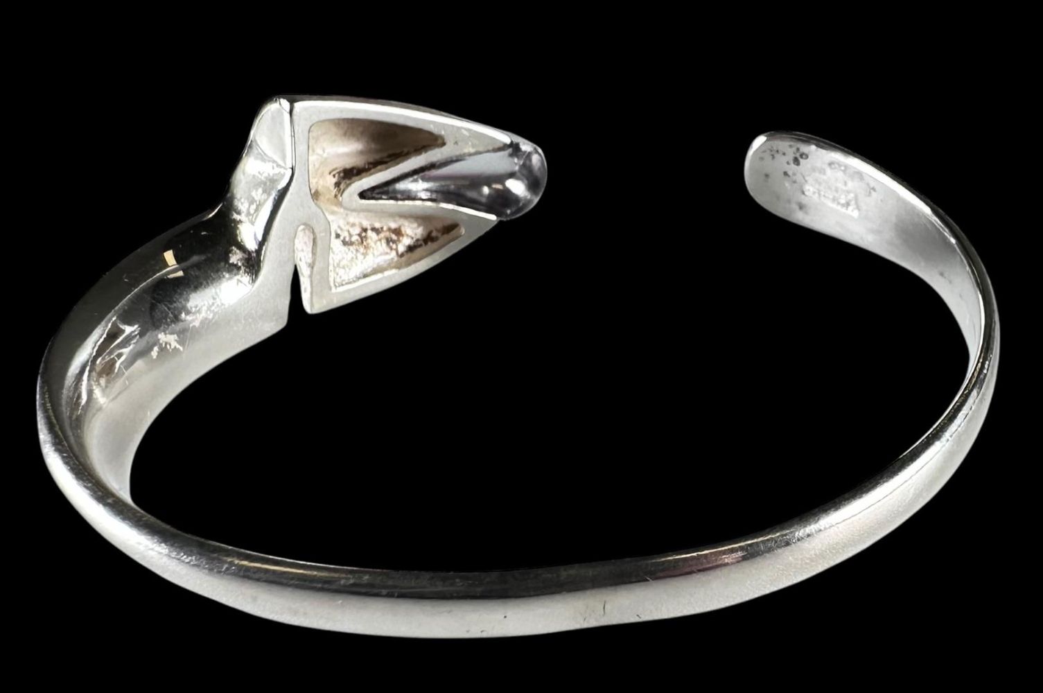 Silver compression bracelet Lapponia 'Salamander' with transparent acrylic stone.