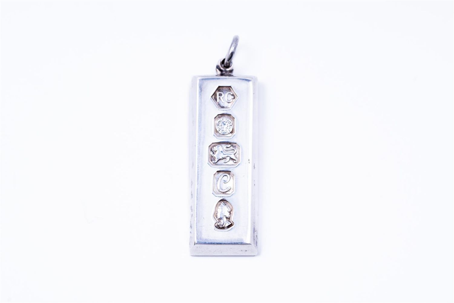 Silver silver bar Ingot pendant with British hallmarks.Handmark 'Lion...