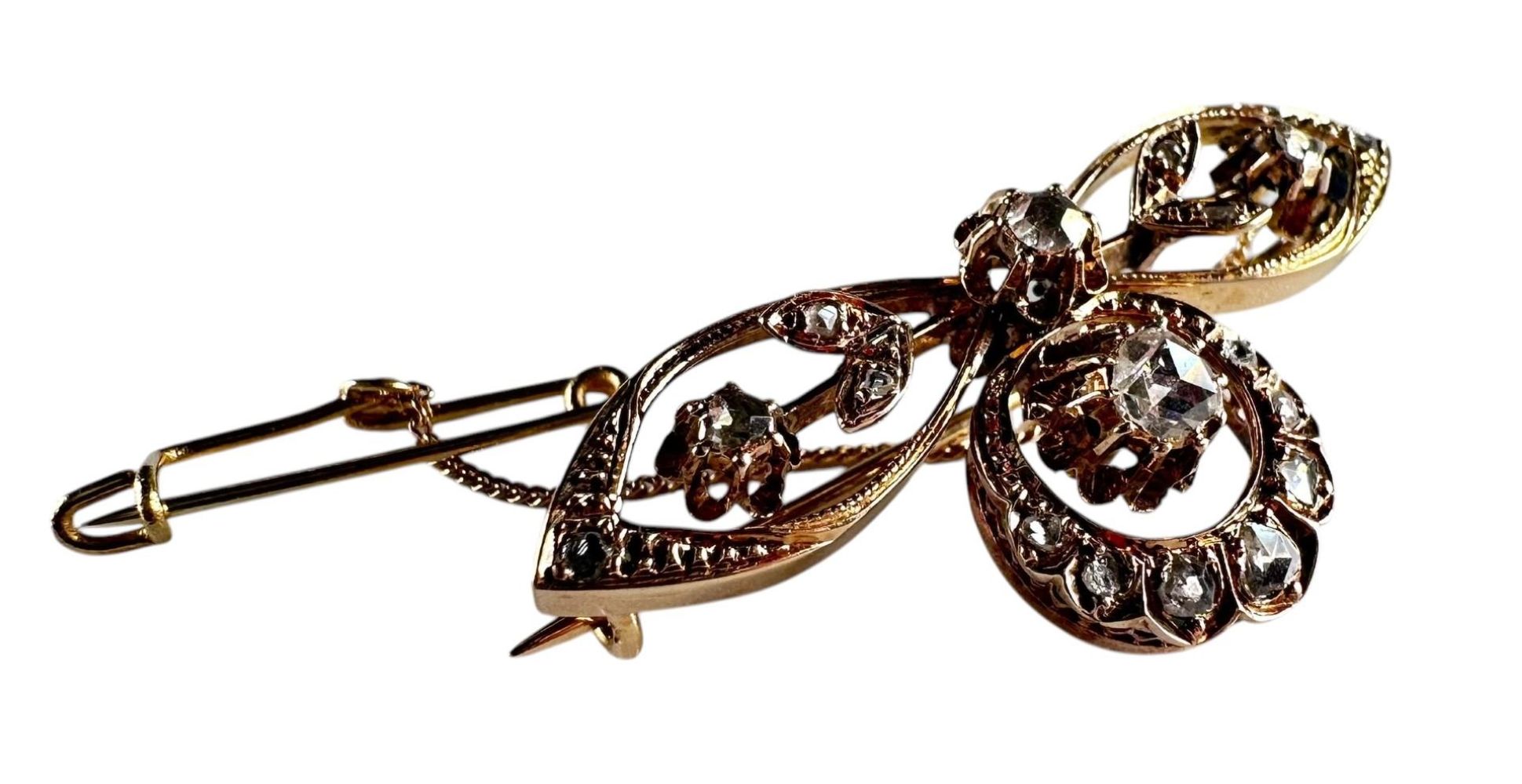Antique yellow gold brooch set with 15 rose cut diamonds with an extra...