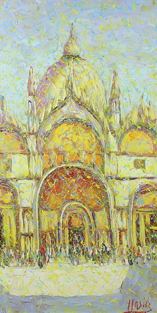 Masia Roberto Venezia Basilica di San Marco olio su tela, cm. 100x50 firmato in basso a destra, firmato per autentica ed intitolato al retro