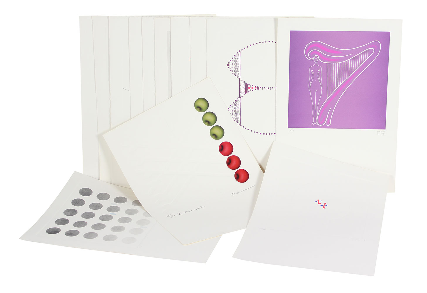 AA.VV. Il Numero 7, 1976 cartella composta da 13 rilievografie, cm. 52,5x37 (rilievografie cm. 50,5x35), cartella es. 25/77 la cartella contiene opere di Elvio Becheroni, Sergio Dangelo, Nino Di Salvatore, Pietro Gentili, Franco Grignani, Maurice Henry, Ho-Kan, Giovanni Leombianchi, Marco Magrini, Philip Martin, Galliano Mazzon, Carlo Nangeroni, Vanni Viviani e una poesia di Cesare Vivaldi