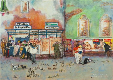 Walter Piacesi (Ascoli Piceno 1929) ULTIME NOTIZIE Olio su tavola, cm. 50x70 Firmato in basso a destra. Sul verso: firma e titolo. Autentica dell'Artista su foto.