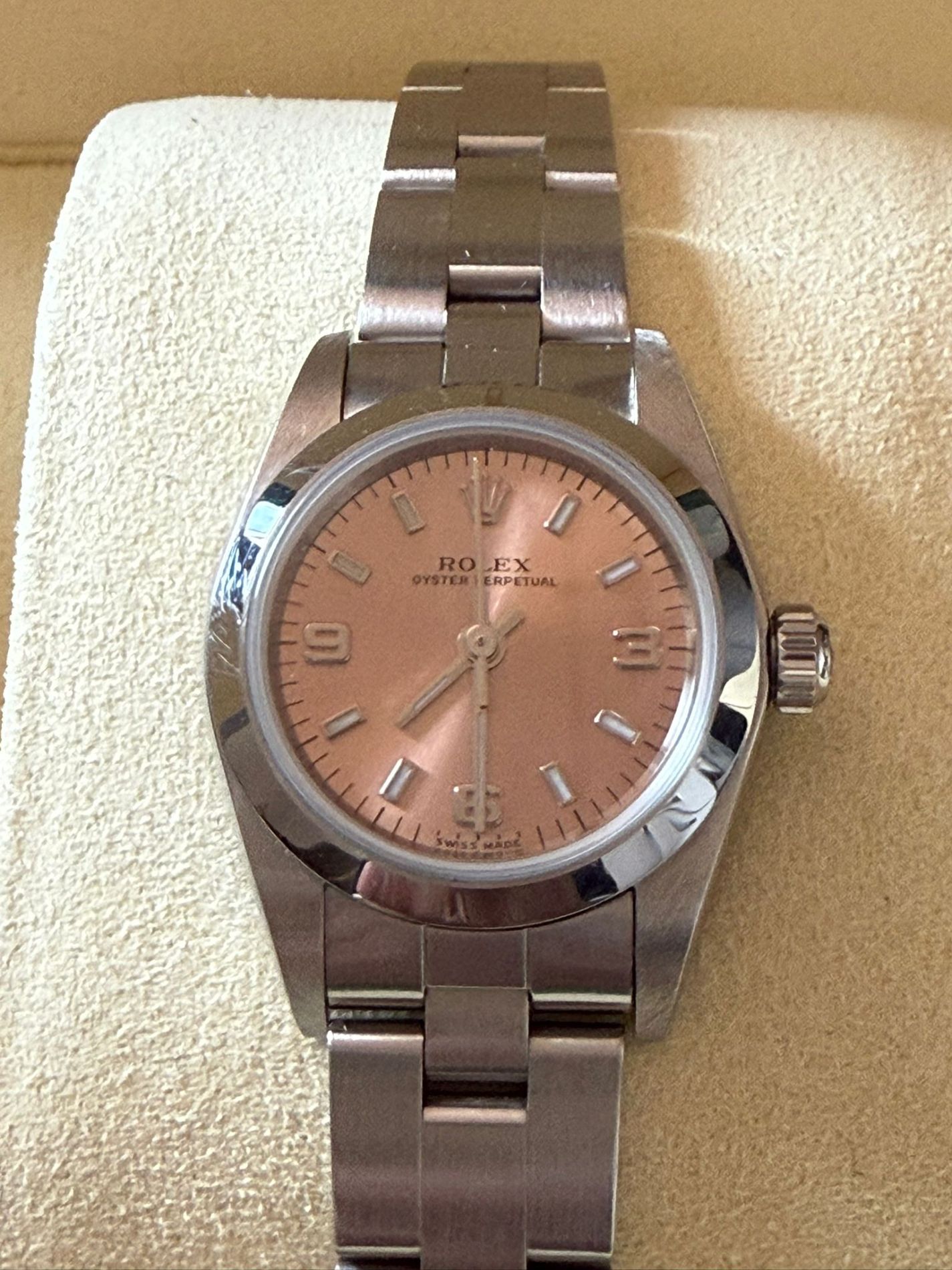 Marca Rolex Modello (Orologio) Oyster Perpetual Numero di referenza 76080 Carica Automatico Materiale della cassa Acciaio Materiale cinturino Acciaio Anno di produzione primi anni 2000 Condizione Usato (Ottimo) L'articolo presenta segni di usura lievi, come ad esempio graffi leggeri, ma non percepibili al tatto. Corredo Senza scatola originale, senza documenti originali Materiale della cassa Acciaio Diametro 26mm Materiale lunetta Acciaio Vetro Vetro zaffiro Cinturino Materiale cinturino Acciaio Colore cinturino Acciaio Chiusura Déployante Materiale chiusura Acciaio Garanzia di un anno del negozio
