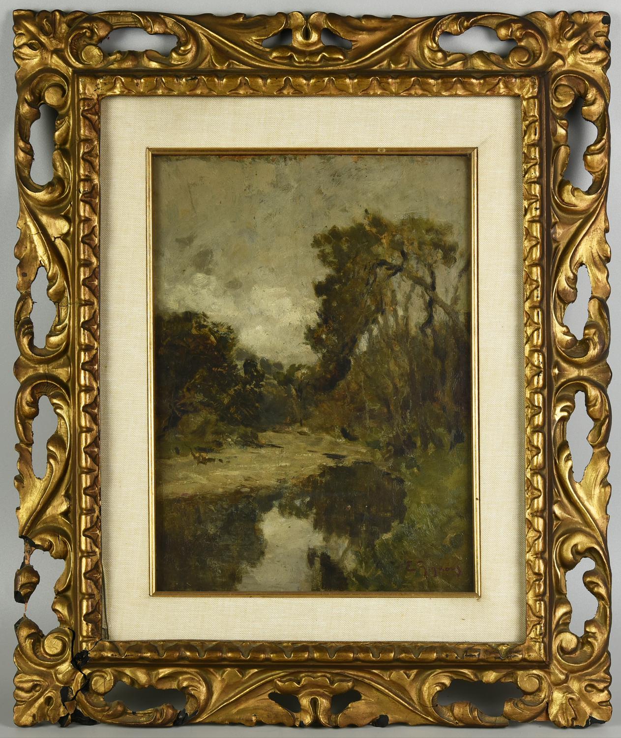 Eugenio Gignous, (1850 - 1906) PAESAGGIO olio su tavola, cm 31,9x23,1 firma
