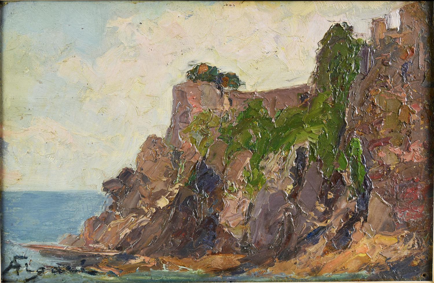 Andrea Figari, (1858 - 1945) SCOGLIERA LIGURE olio su tavola, cm 16x24,5 firma