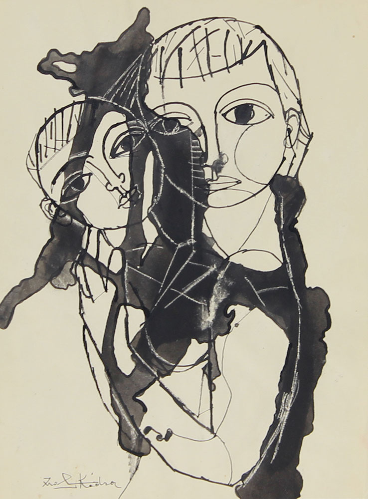 Kodra Ibrahim Maternità china e acquarello su carta, cm. 33x24 firmata in basso a sinistra senza cornice
