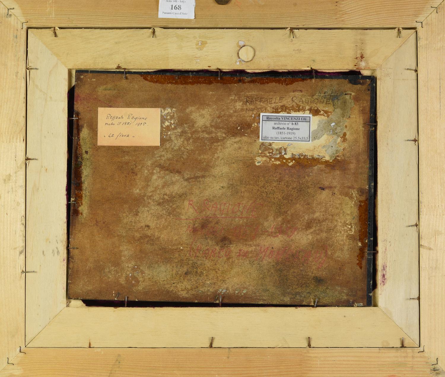 Raffaele Ragione, (1851 - 1919) LA FIERA olio su cartone, 25,7X33,7 cm firma...