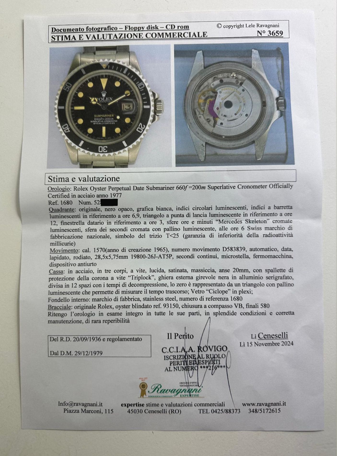 Con scatola originale, senza documenti originali, expertise realizzato da Ravagnani perito cciaa