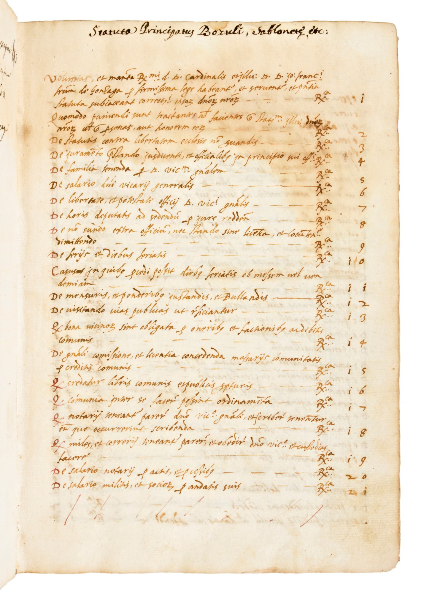 "Statuti Principati Bozzolo Sabbioneta ..." Manoscritto di diritto antico e economia