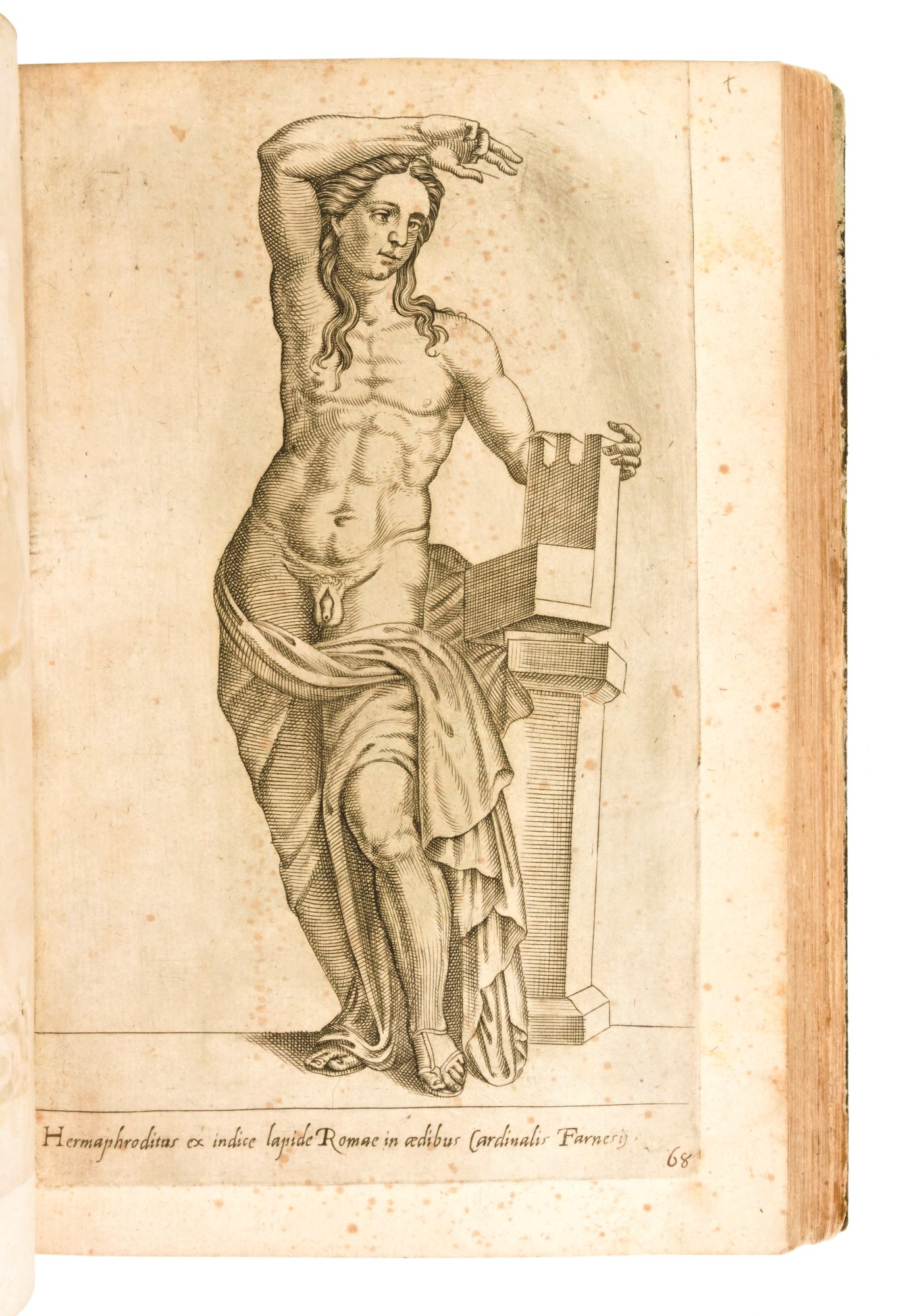 In-folio, mm. 250x185, 148 tavole calcografiche. 1 frontespizio calcografico. Cartonato flessibile post. (xx sec.) in mezza tela. Splendida copia, in ottimo stato di conservazione generale con lievi segni del tempo. Restauri al verso del frontespizio e alla Tav. 1. Carte con margini rifilati, a toccare il margine superiore della tav. 68.Raccolta di 148 tavole calcografiche a piena pagina raffiguranti le statue antiche romane. Importante apparato iconografico sulla scultura dei antichi romani ad opera dell’incisore italiano Giovanni Battista Cavalieri (1525-1601), noto per le sue incisioni e documentazioni sulle antichità romane. In Roma il 1595 (data sulla tav. 1 ), editore non specificato.