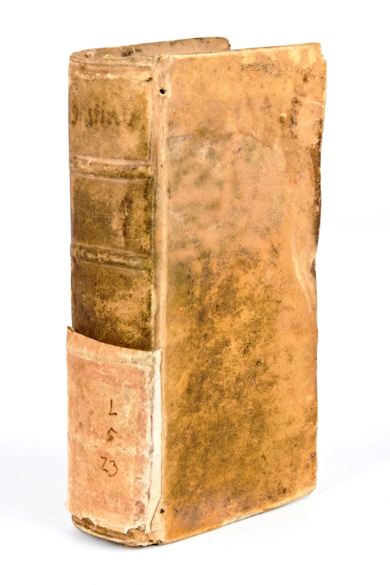 Formato in-12°, mm. 120x65, pp. 322. Testo completo (mancano le ultime 2 carte bianche). Legatura coeva in piena pergamena con 4 nervature, titolo manoscritto al dorso (sbiadito) e al taglio inferiore. Frontespizio con vignetta xilografica (lieve gora), sporadiche fioriture e leggere macchie. Presente ex libris manoscritto in china antica al risguardo anteriore.