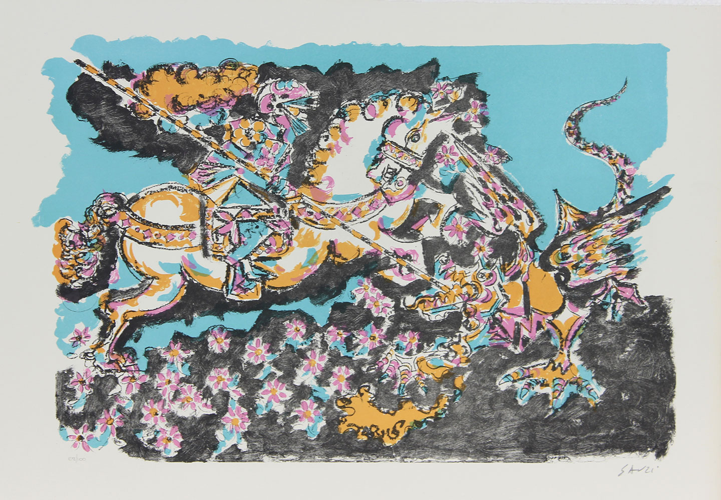 AA.VV. Cartella di 5 opere su carta La cartella contiene: Andy Warhol (D'Aprés), Marilyn, stampa su carta, cm. 49,5x49,5, firmata in lastra in basso a destra e 4 litografie con relativi certificati di autenticità della Litoinvest, cm. 50x70: Walter Cremonini, Jetta Buttini (XV/XXV), Piero Gauli (69/100) e Stanley Tomshinsky (III/XXV) senza cornici