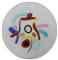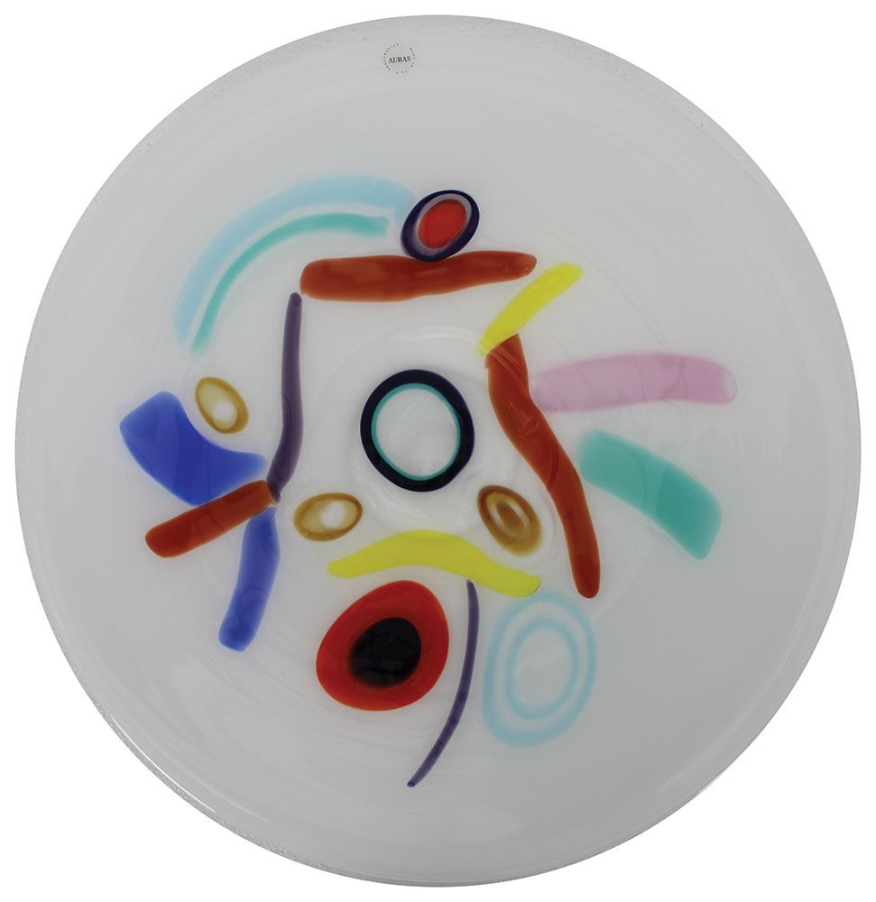 VEART Piatto "AURAS" vetro bianco lattimo con inserti a colori, diam. cm. 39 l'opera raffigura un disegno Joan Miró