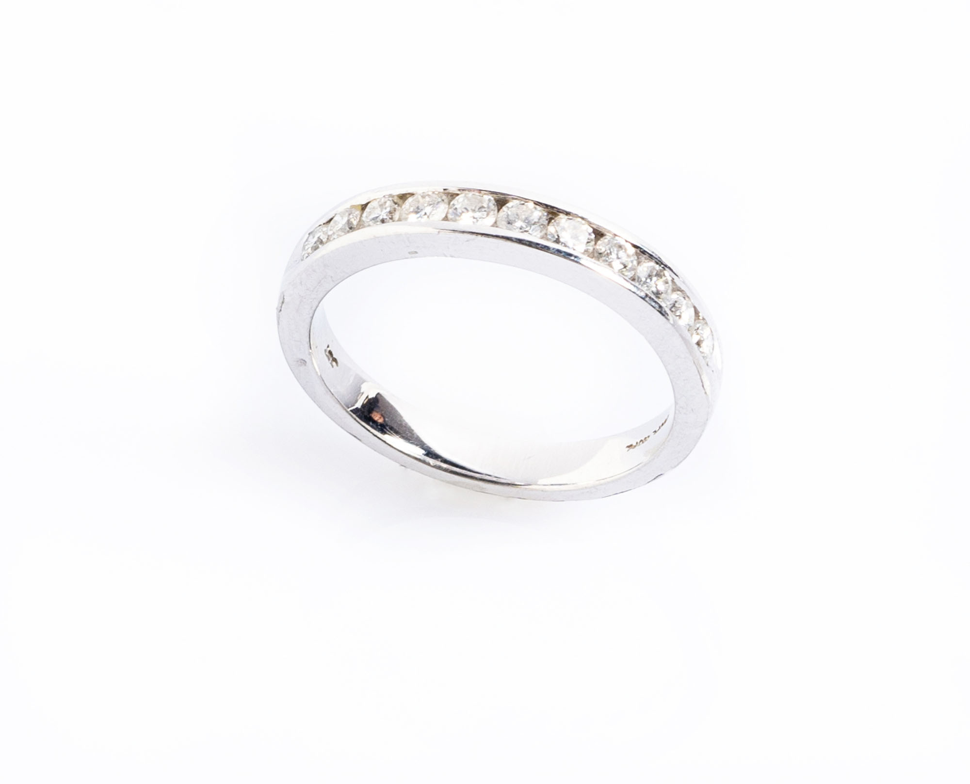 Fede in oro bianco 18ktImpreziosita da otto diamanti taglio brillante di 0.25 ct complessivi circaMisura 14Peso gr 4