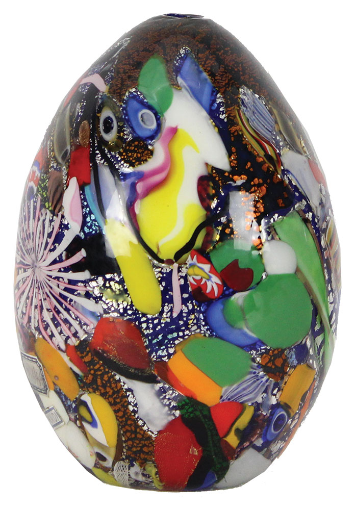 AVEM - Radi Giulio Vaso ovale vaso in vetro della serie "Smalti e Ossidi metallici a reazioni policrome" con murrine e canne, h. cm. 24