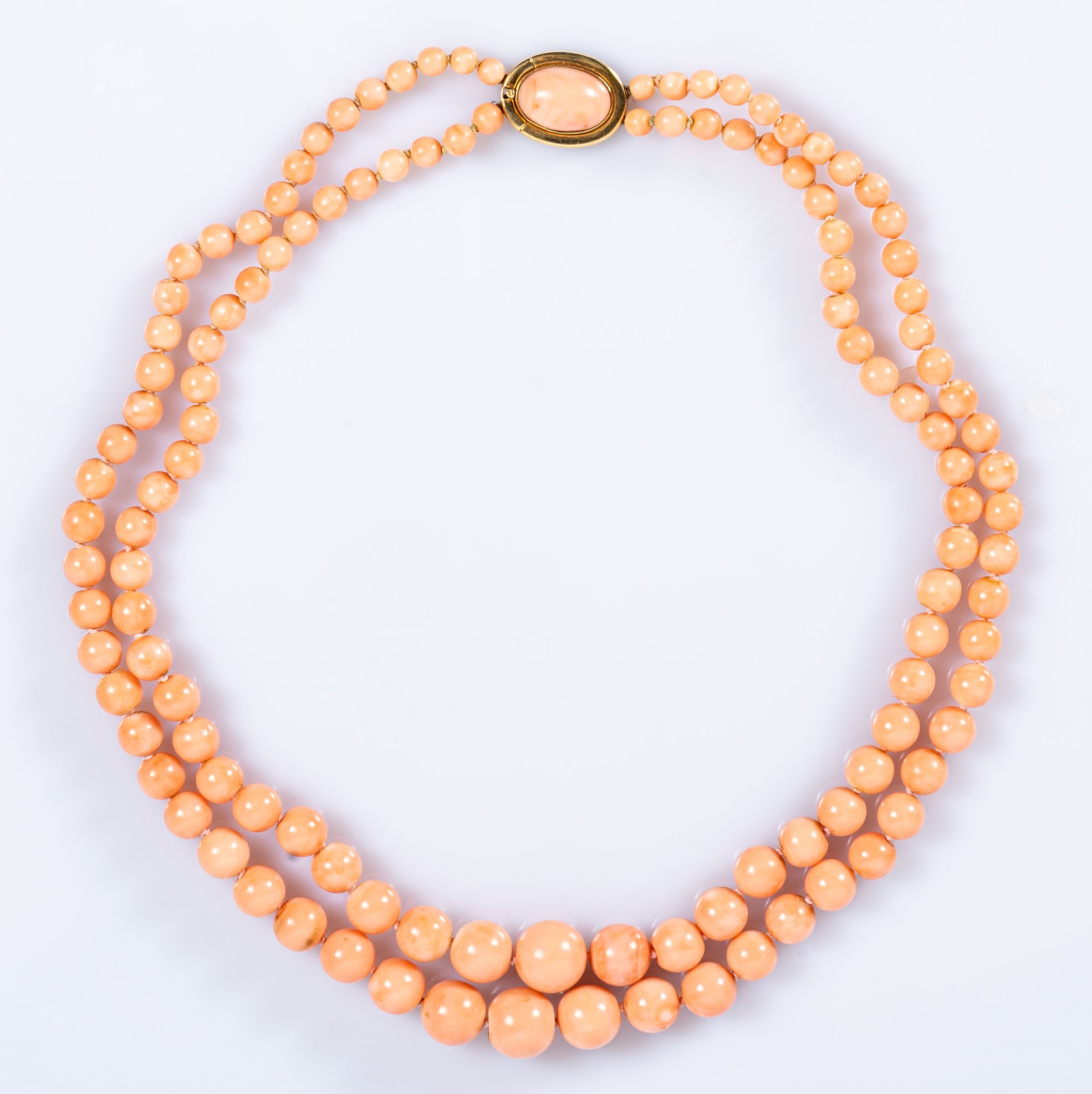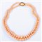 Collana in oro giallo 18kt e coralloCon corallo rosato a scalare da 5.30 mm a 14.54 mm circaChiusura in oro e coralloLunghezza 53 cm circaPeso totale gr 125 circa