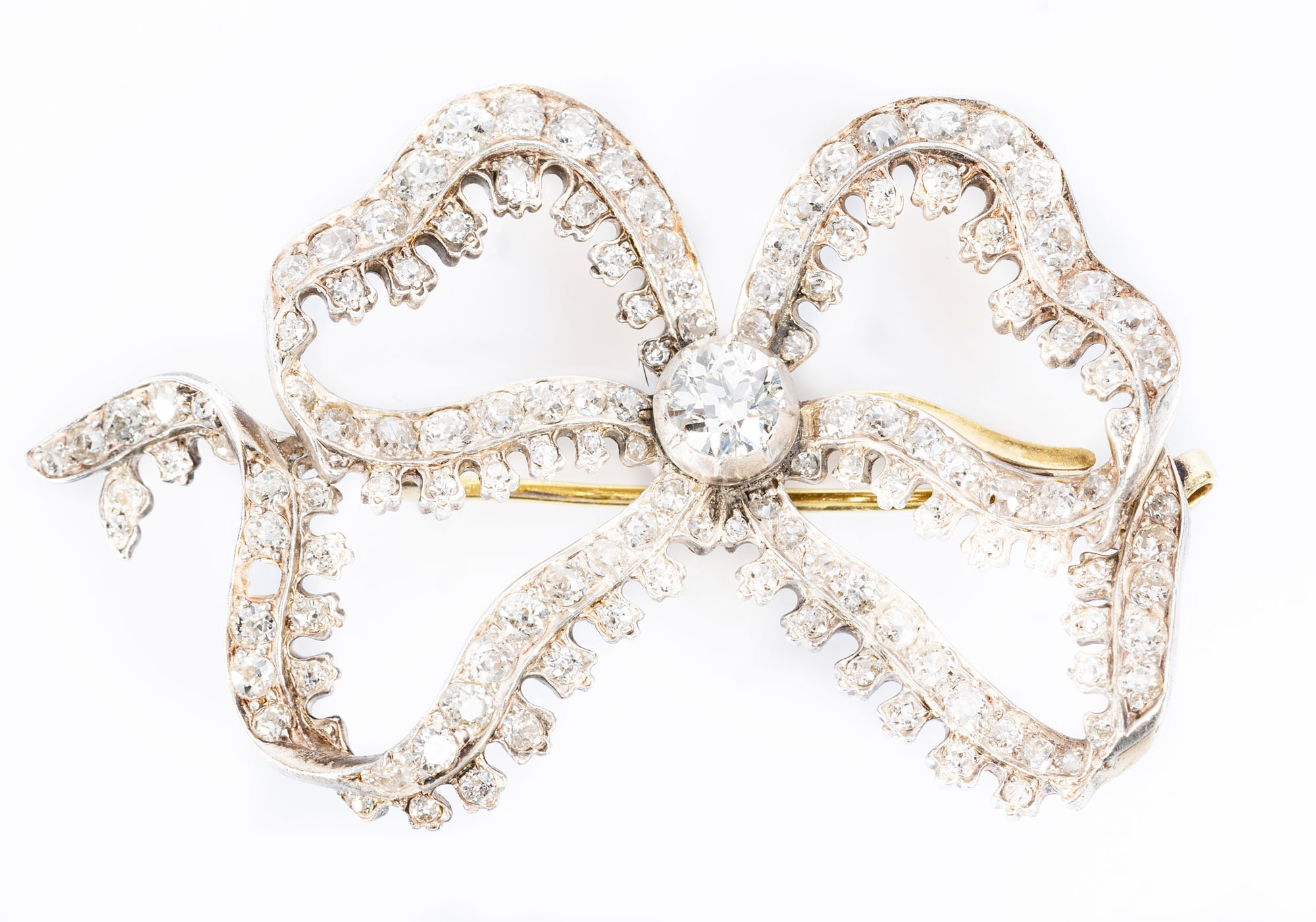 Lotto 60 | Spilla in oro 18kt e argento con diamanti