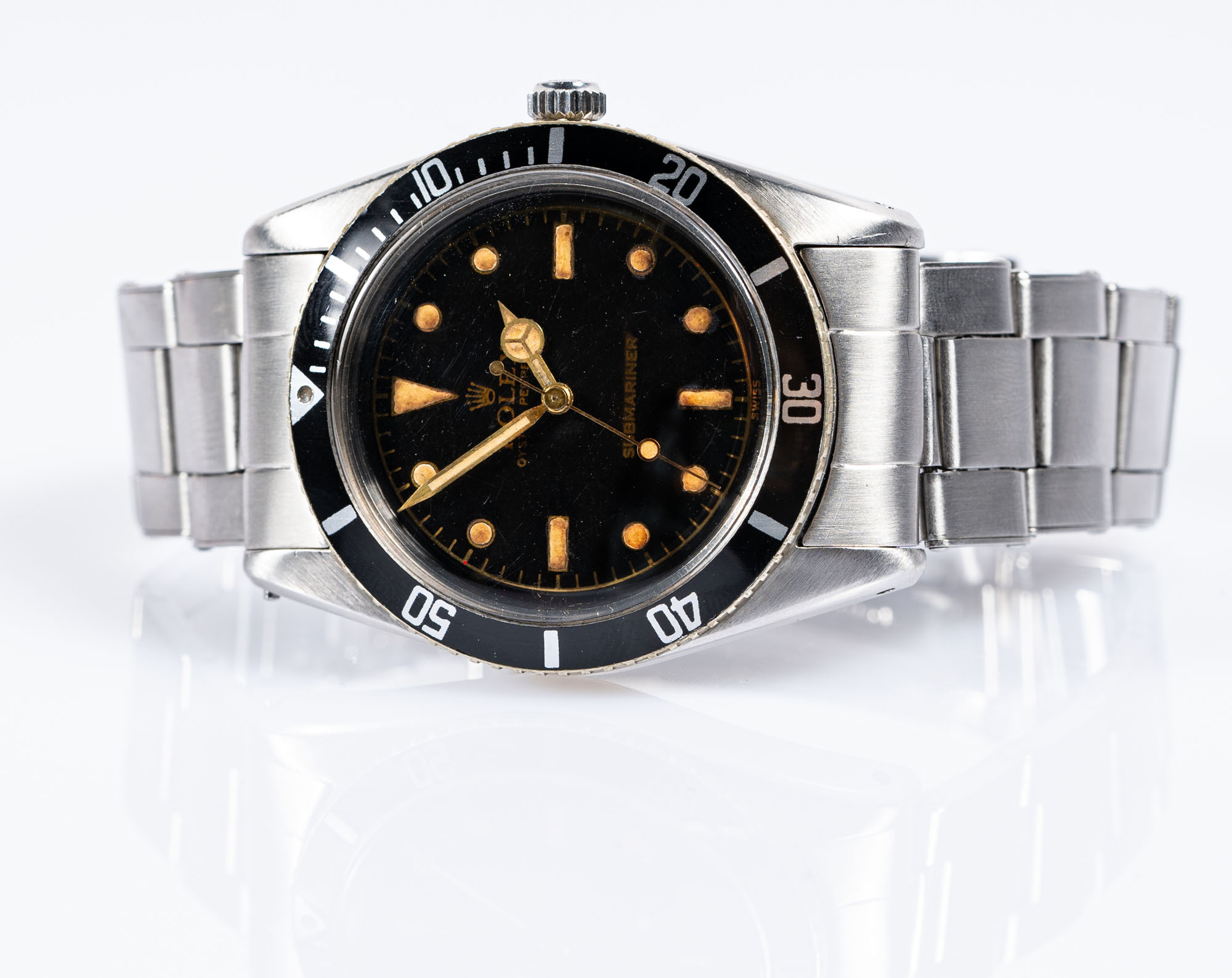 Rolex - Oyster Perpetual Submariner1950Ref. 6204Cassa in acciaioQuadrante ristampatoDimensioni 40 mmMovimento automatico, calibro 420Vetro esaliteCinturino in acciaioSenza scatola e garanzia