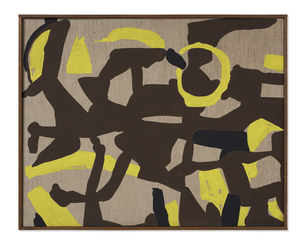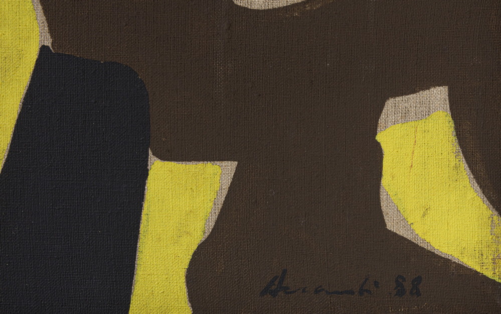 ACCARDI CARLA (1924 - 2014) GIALLOBRUNONERO. 1988. vinilico su tela grezza. Cm 90,00 x 70,00. firma e data