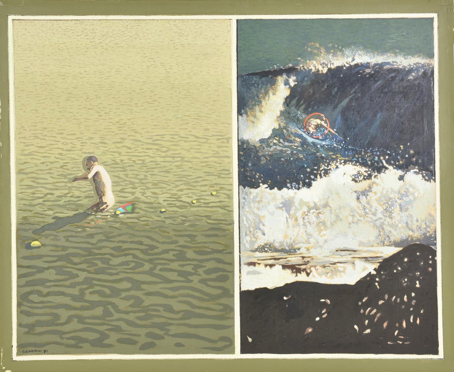 Giuseppe Giannini (1937) IL LAGO E IL MARE, 1971 olio su tela, cm 50x60 firma...