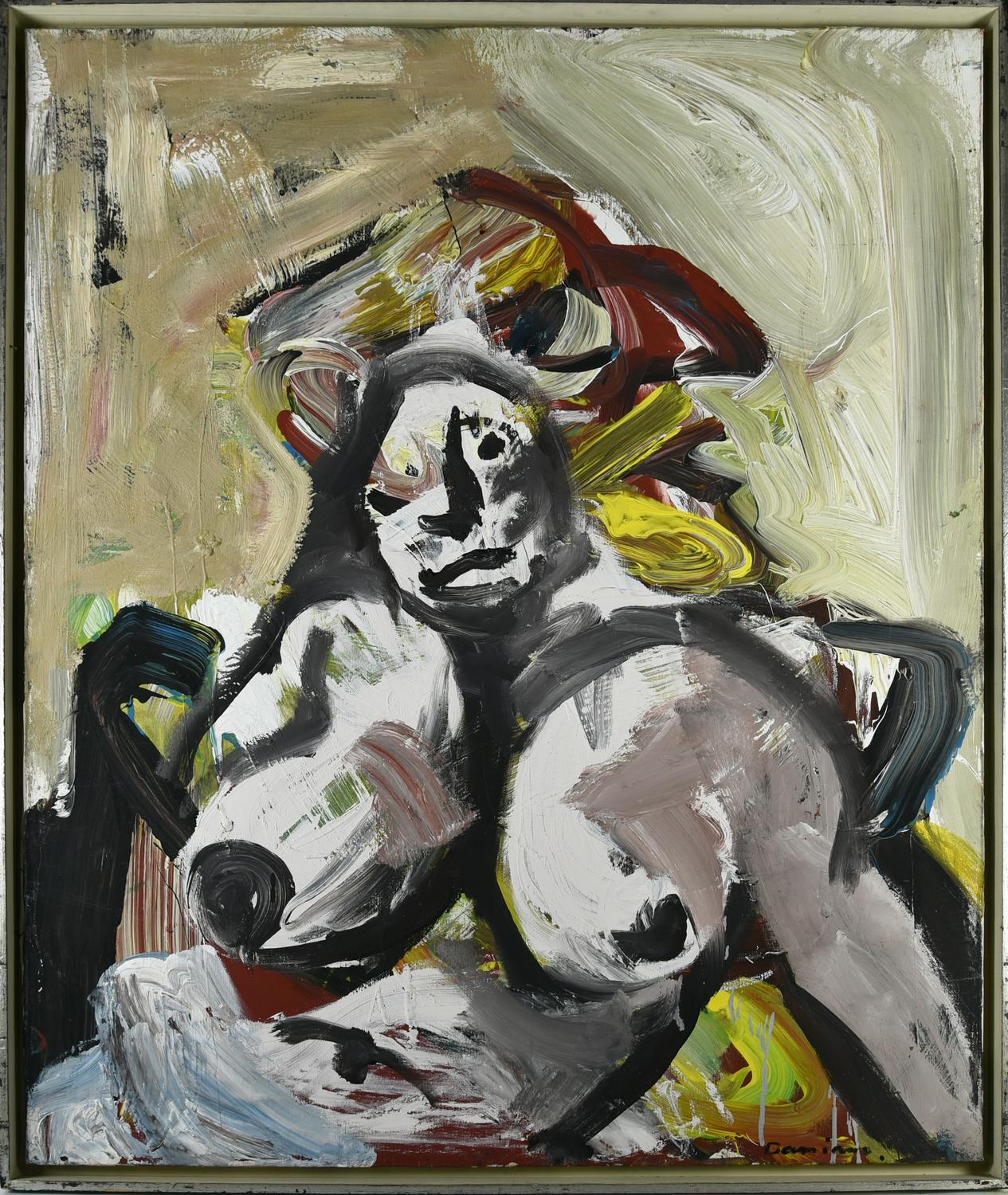Bernard Damiano (1926 - 2000) LE STATUE, 1978 olio su tela, cm 100x80 firma...