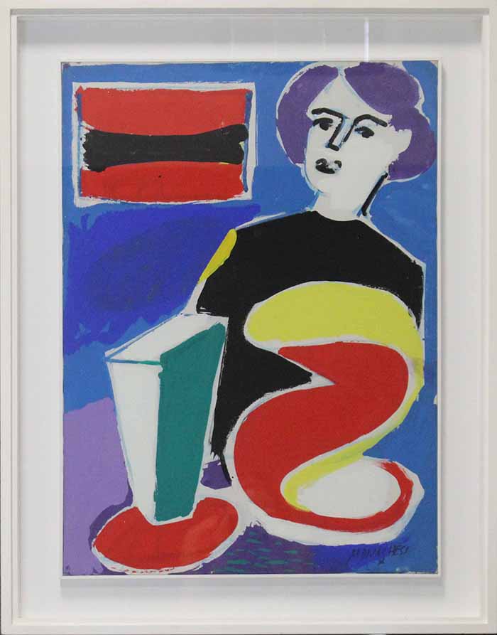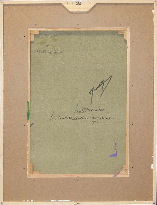SANTE MONACHESI, "Ritratto con scultura del 1930-35" Anni '70, Acrilico su tela, Dim. 70x50, Al fronte: firmato in basso a destra, Al verso: titolo e firma, Opera archiviata al N° AHH2BLU presso l'archivio LUce Monachesi in data 13/06/1996, Opera con cornice
