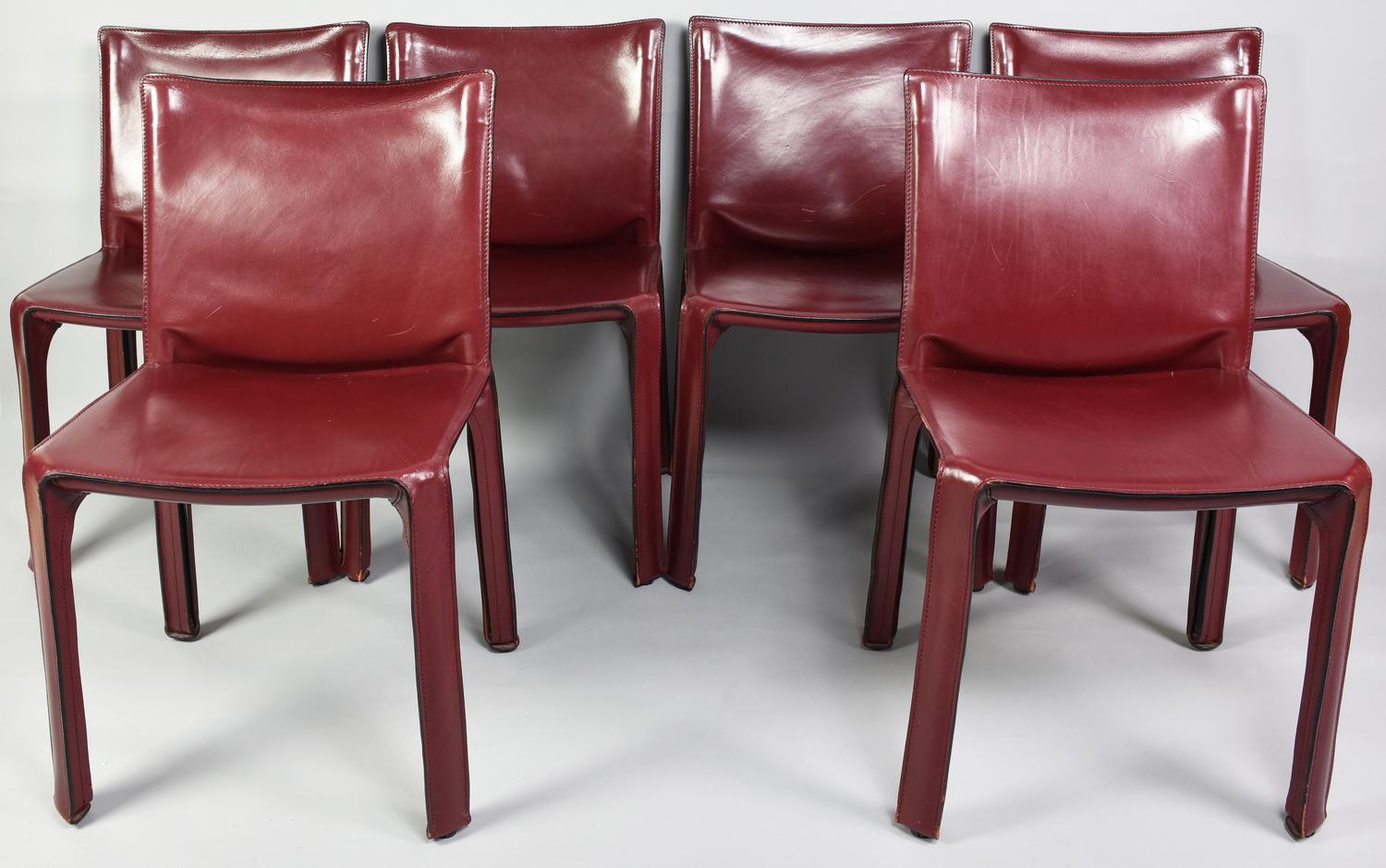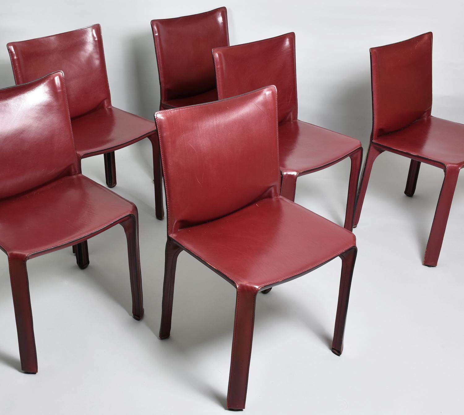Mario Bellini 412 CAB CHAIRS PER CASSINA, 1977 lotto di sei sedie in cuoio...