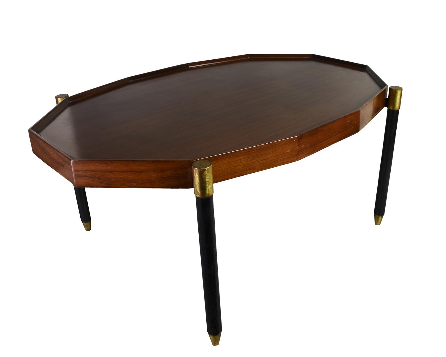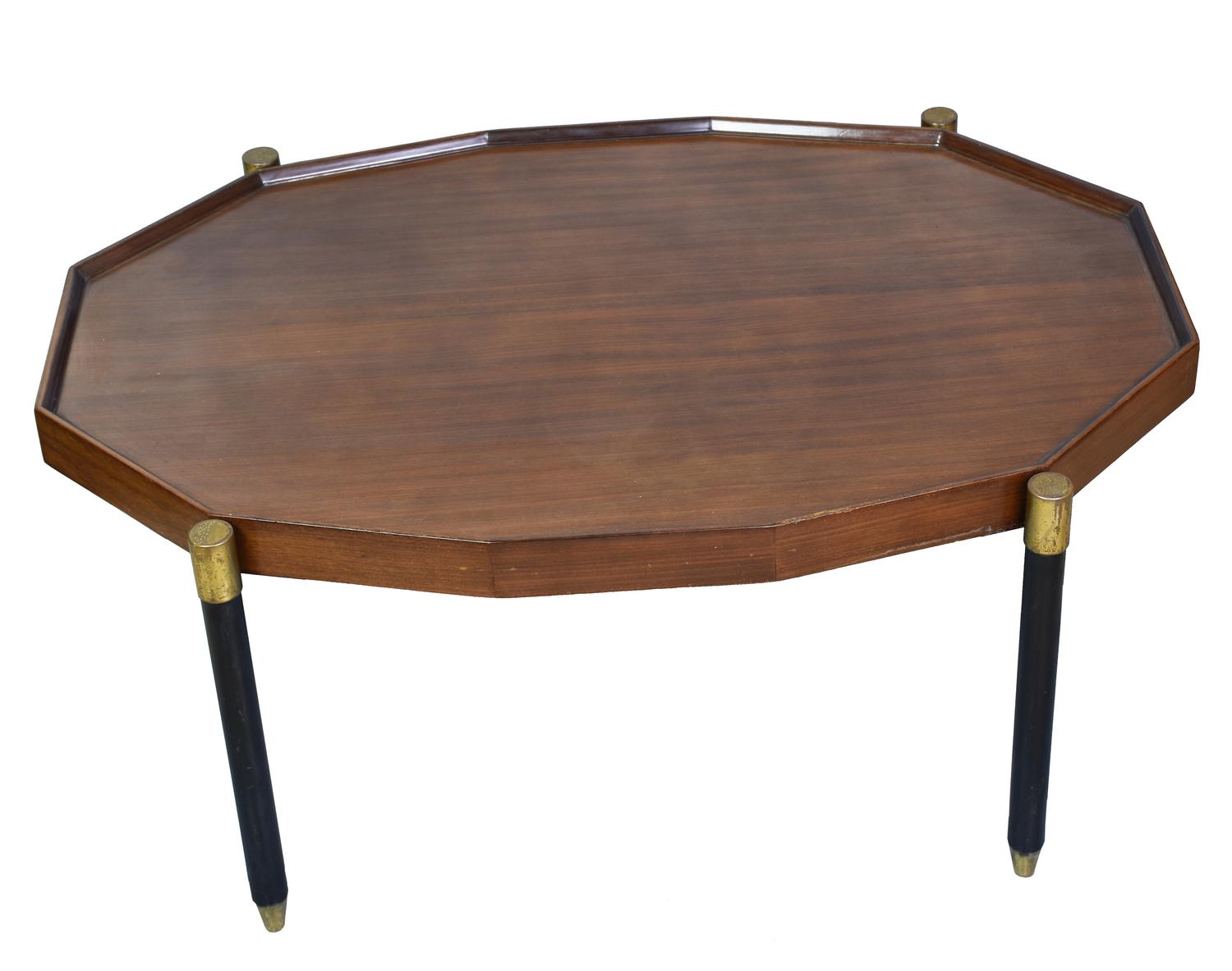 TAVOLINO ottone e legno impiallacciato, cm 33,5x76x51 L’opera presenta segni...