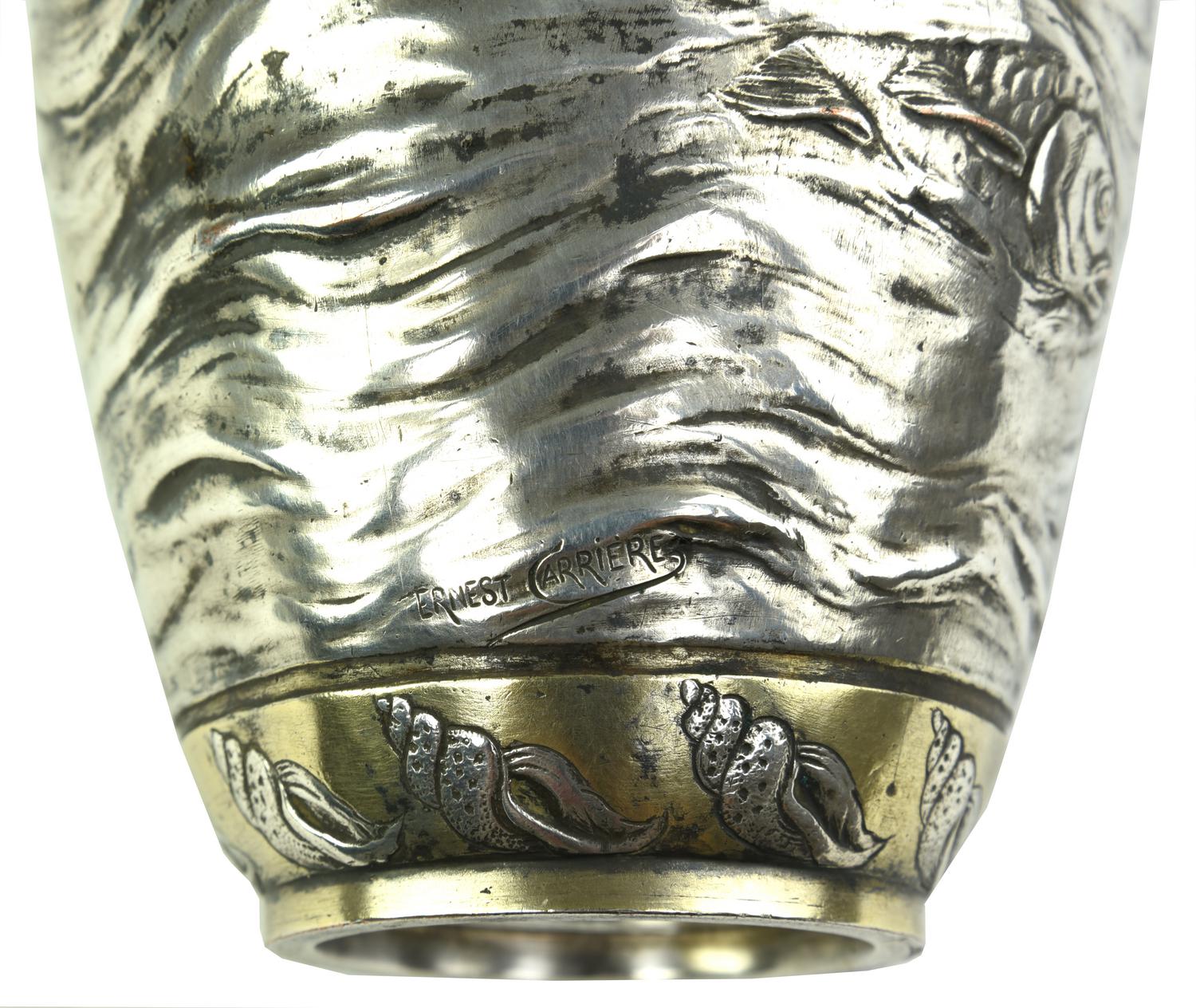 Ernest Carriere ALGUES ET POISSONS silver plated e argento dorato, h cm 20...