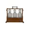 PARTICOLARE PORTA BOTTIGLIE in legno di rovere contenente tre decanter per alcolici in cristallo intagliato Inghilterra primi 900 h cm 27 x 34 x 15