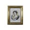 STAMPA COLORATA raffigurante giovane donna dentro cornice in legno dorato, arricchita da intagli a motivi floreali Francia XIX secolo h cm 57 x 42,5 / cornice h cm 78 x 63