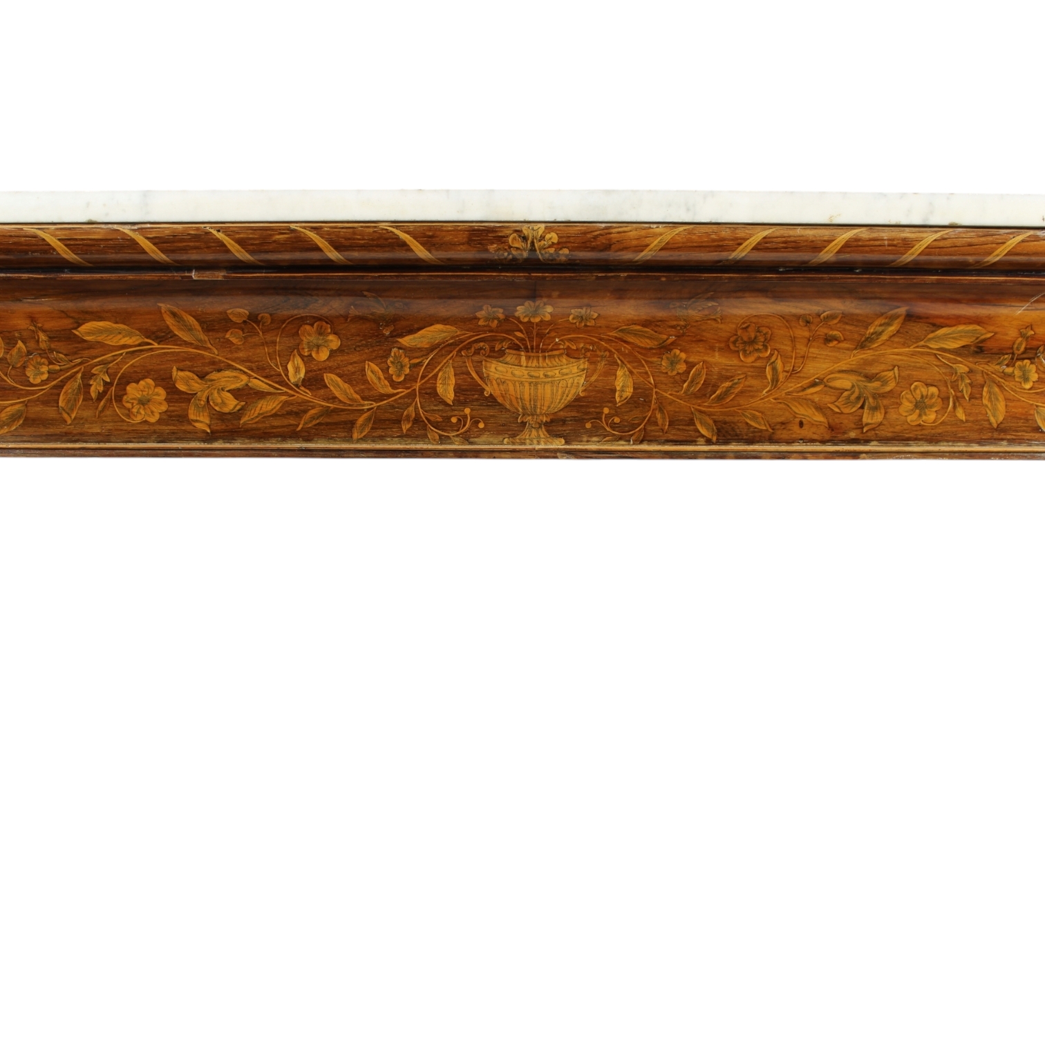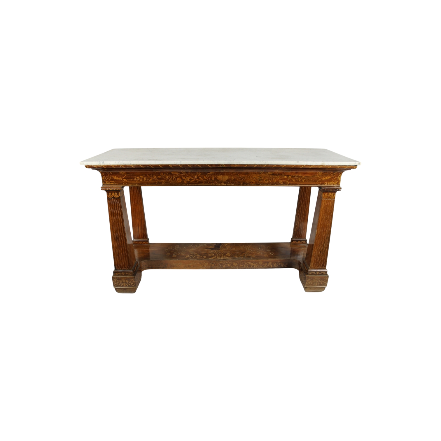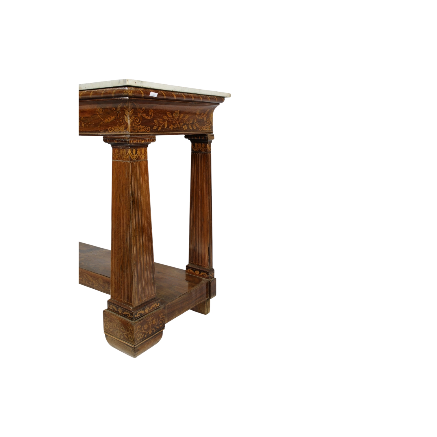 BELLA CONSOLLE CARLO X in legno di palissandro riccamente intarsiata in bosso e piano in marmo bianco di Carrara Sicilia XIX secolo h cm 104 x 173 x 63
