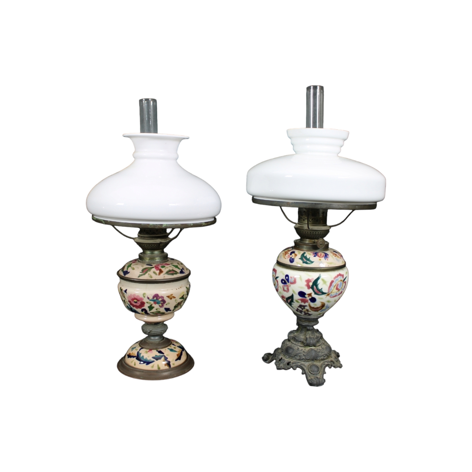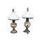 DUE LUMI in metallo e ceramica con paralumi in opaline Italia meridionale fine 800 primi 900 h cm 59 x 17 x 17 / h cm 58 x 15 x 15