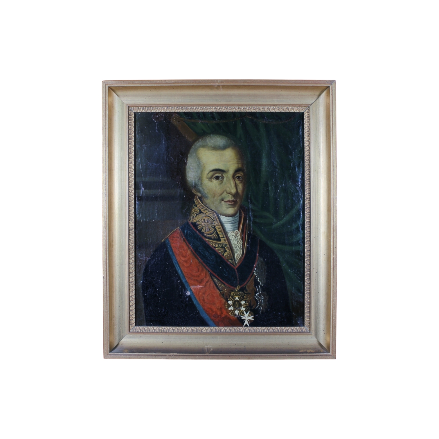 OLIO SU TELA raffigurante personaggio borbonico in alta uniforme dentro cornice in legno dorato non coeva maestranze sud Italia XIX secolo h cm 78 x 65