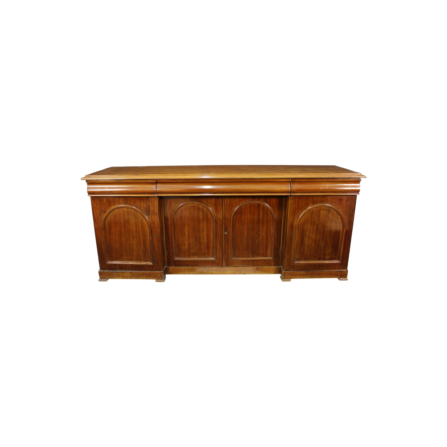 CREDENZA VITTORIANA in mogano a 4 sportelli e 3 cassetti Inghilterra XIX secolo h cm 93 x 216 x 56